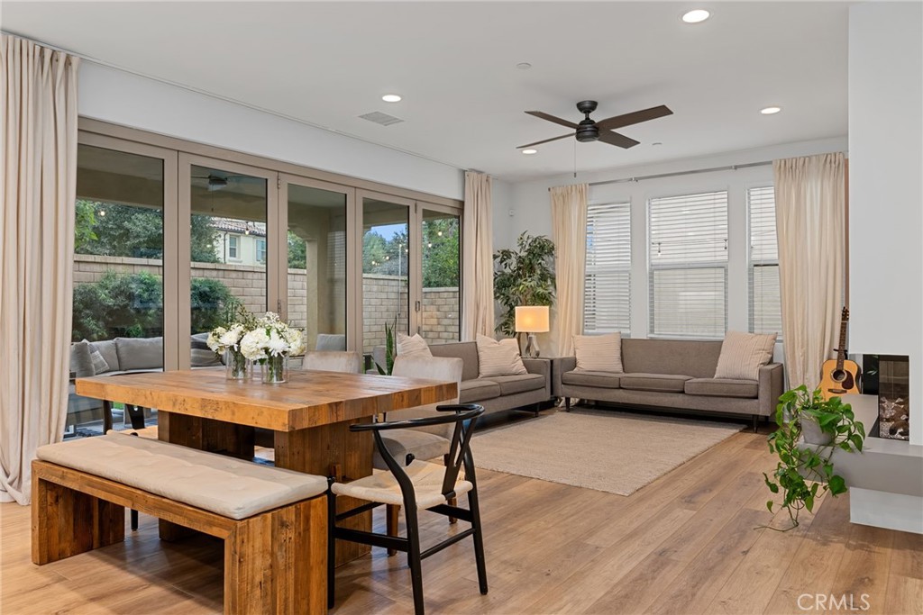 Located in the highly desirable Baker Ranch community in Lake Forest, this beautifully upgraded residence showcases exceptional design, modern efficiency, and flexible generation living space. Featuring 4 bedrooms and 3 bathrooms, this thoughtfully designed home offers an open-concept floorplan ideal for everyday living and entertaining. The chef-inspired kitchen includes quartz countertops, upgraded appliances, and an oversized island that opens seamlessly to the dining and living areas. Expansive 5 panel bi-fold doors create true indoor-outdoor living, providing direct access to the private backyard—perfect for entertaining. Extensive builder upgrades are found throughout, custom window treatments, recessed lighting, designer finishes and a two story built-in bookcase. Upstairs, the spacious primary suite features two walk-in closeets, dual vanities and upgraded finishes. Secondary bedrooms are generously sized. Enjoy resort-style amenities including pools, parks, trails, sports courts, clubhouses, and year-round community events. Conveniently located near shopping, dining, and top-rated schools. A rare opportunity to own a highly upgraded home in one of Orange County’s most sought-after master-planned communities.