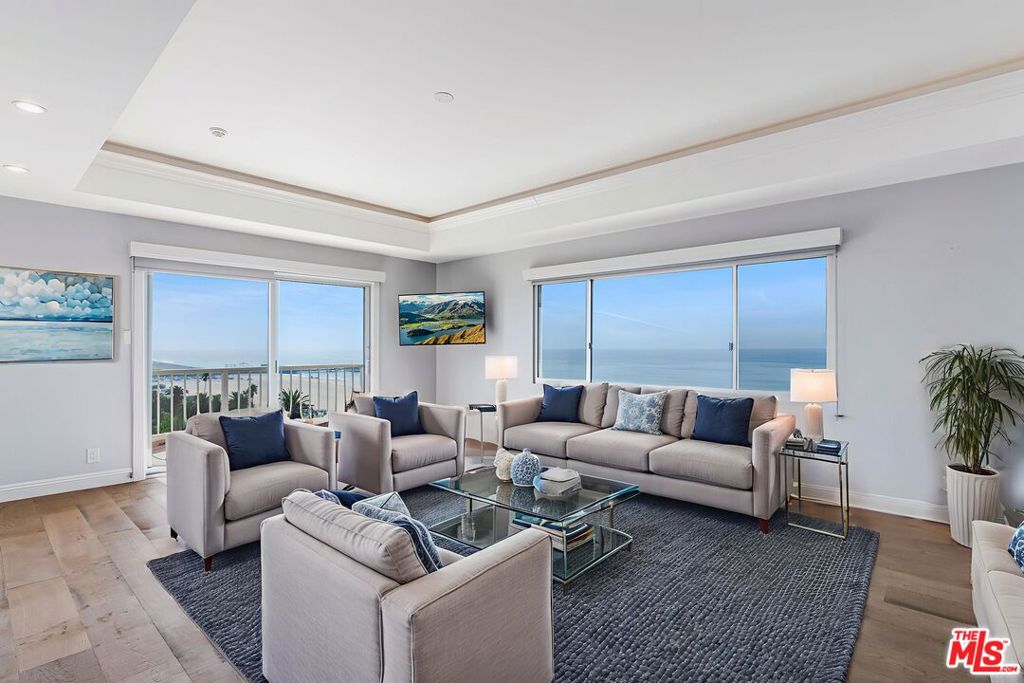 Available for both lease and sale! Experience spectacular head-on ocean views with nightly sunsets and sweeping coastline panoramas from this gorgeous 9th-floor front unit in one of Santa Monica’s most coveted addresses. Beautifully remodeled throughout, the residence offers 2 bedrooms and 2 bathrooms across 1,232 SF of living space, featuring hardwood floors, recessed lighting, built-ins, and new window treatments add elegance and comfort. Step inside to a bright, welcoming entry that opens to a spacious living area with a balcony, perfect for soaking in the coastline breeze. The living room flows seamlessly to a modern kitchen with stainless steel appliances, granite countertops, a breakfast bar, and ample cabinetry – ideal for cooking and entertaining. The primary bedroom is a serene retreat, featuring an ensuite bathroom with dual sinks and a walk-in closet. The second bedroom offers flexibility for guests, an office, or a creative space, complemented by a full guest bathroom and closet. Located across the street from the beach and moments from 3rd Street Promenade, bike paths, shops, and restaurants, with Montana Avenue’s boutiques and cafes nearby. HOA includes utilities, internet, and basic cable.