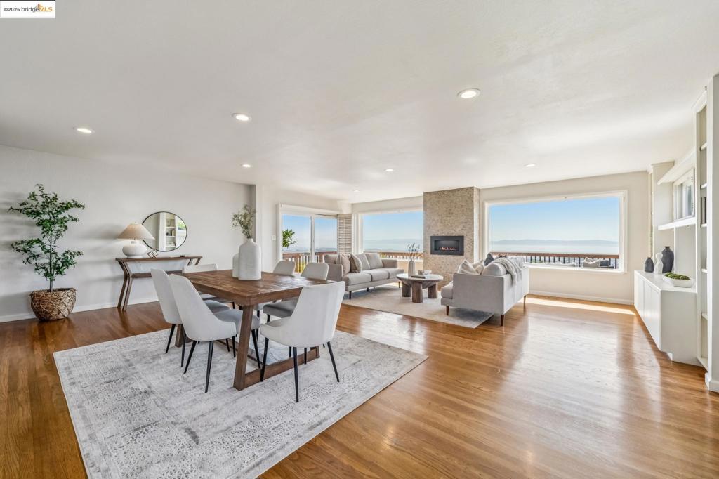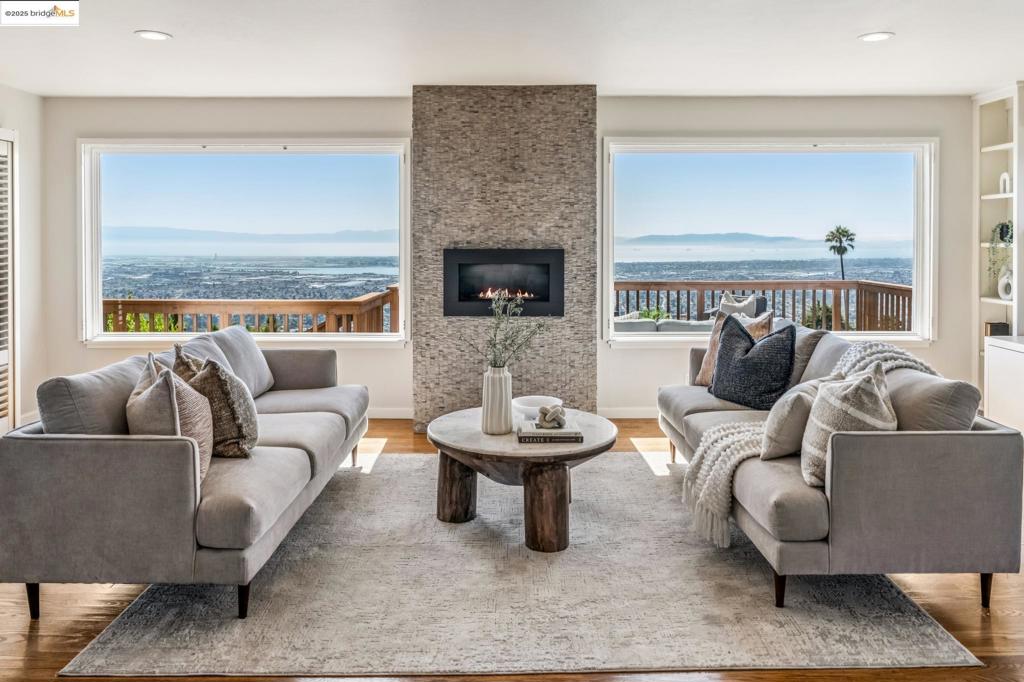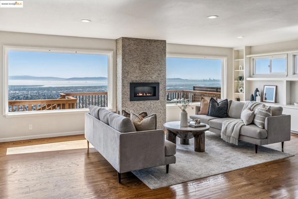 Perched to capture sweeping views of the Bay—including all four iconic bridges—this stunning Mid-Century Modern home blends timeless design with modern upgrades. This split-level residence offers both charm & contemporary comfort. The main level is perfect for entertaining, featuring a spacious open-concept living area with rich wood flooring, recessed lighting, custom built-ins, a dramatic stone fireplace, and oversized picture windows that frame the breathtaking views. Step outside to the expansive deck or patio and enjoy the ultimate indoor-outdoor lifestyle—ideal for relaxing or hosting with the Bay as your backdrop. The updated kitchen is a chef’s dream, showcasing natural shaker-style cabinetry, granite countertops, a white porcelain farmhouse sink, stainless steel appliances, a breakfast nook, and plantation shutters. Upstairs, you’ll find three bedrooms, including a generous ensuite primary. The recently renovated guest bathroom offers modern finishes & thoughtful design. New central heating & AC system with new ducting throughout the home, complete repiping of the entire house, new exterior paint, freshly landscaped front & back yard. The lower level includes the garage, office space, half-bathroom, laundry, & convenient access to the backyard patio. 101chadbourne.com