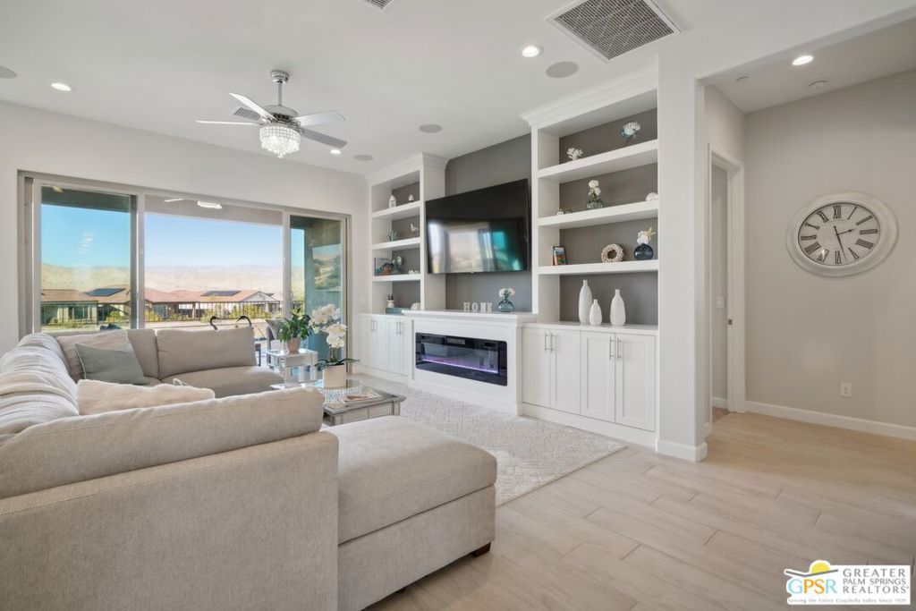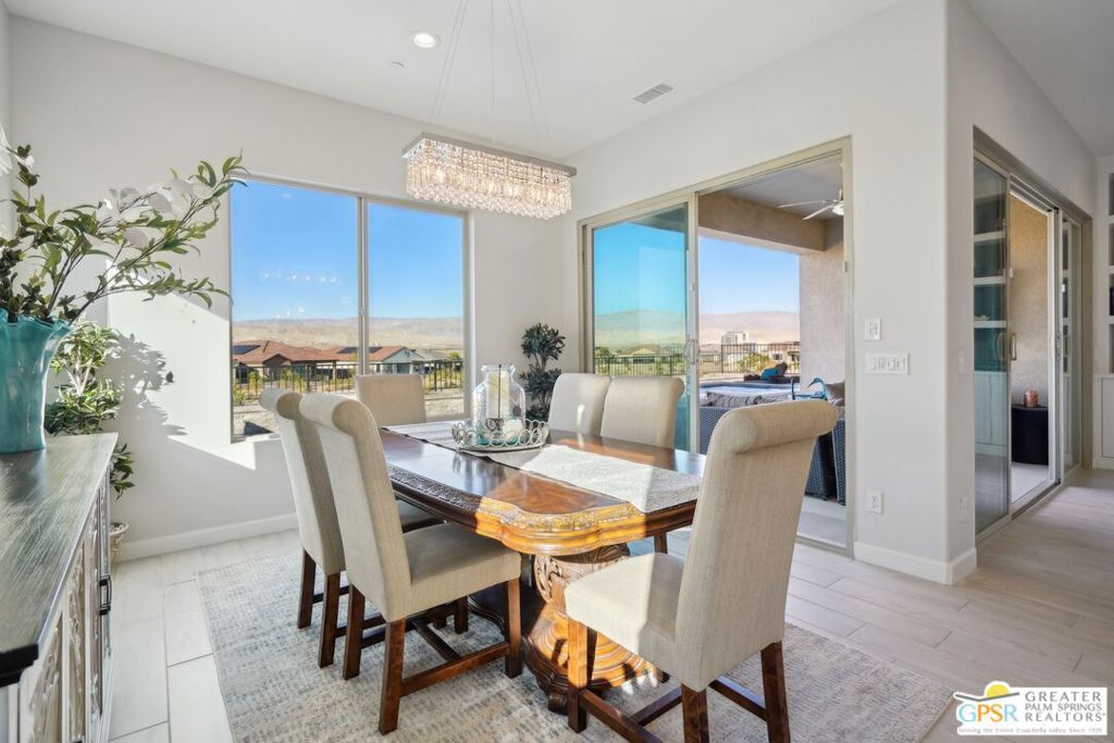 VIEWS! VIEWS! VIEWS! Panoramic Views & Resort-Style Living! Welcome to this stunning Retreat Series Plan 7 REFUGE with charming Tuscan facade, built in 2022 and featuring OWNED SOLAR for energy efficiency. This beautifully upgraded home offers 2 spacious bedrooms, a versatile den/office with closet, 2 baths, and a convenient powder room – perfect for hosting and everyday living. Step into a bright and open layout adorned with designer touches throughout. The chef-inspired kitchen boasts elegant quartz countertops, 42″ upper cabinets with modern hardware, a walk-in pantry, and an oversized island with upgraded pendant lighting – ideal for casual dining and entertaining. The expansive great room is the heart of the home, featuring a built-in 5.1 surround sound system, custom cabinetry, and a cozy remote-controlled fireplace with ambient lighting. Retreat to the luxurious primary suite where breathtaking views greet you each morning. The ensuite bathroom features a sleek stall shower and generous walk-in closet. Step outside to your private backyard oasis, designed for relaxation and entertainment. Enjoy your sparkling saltwater Pebble Tec pool and spa, complete with soothing water features, customizable LED lighting, and built-in surround sound that sets the mood. Additional highlights include: An oversized laundry room with ample cabinetry and utility sink, Expanded 2.5-car garage perfect for a workshop, hobby area, or extra-long vehicle, Prime location within close proximity to the clubhouse. Live the Del Webb lifestyle with access to world-class amenities including a fitness center, tennis, pickleball, and vibrant social activities – all just steps from your door. This is more than a home – it’s a destination. Come experience the views, the upgrades, and the lifestyle you’ve been waiting for!