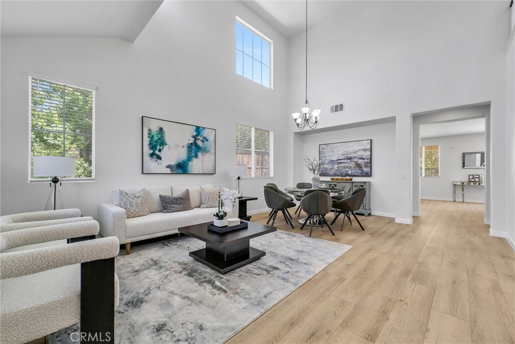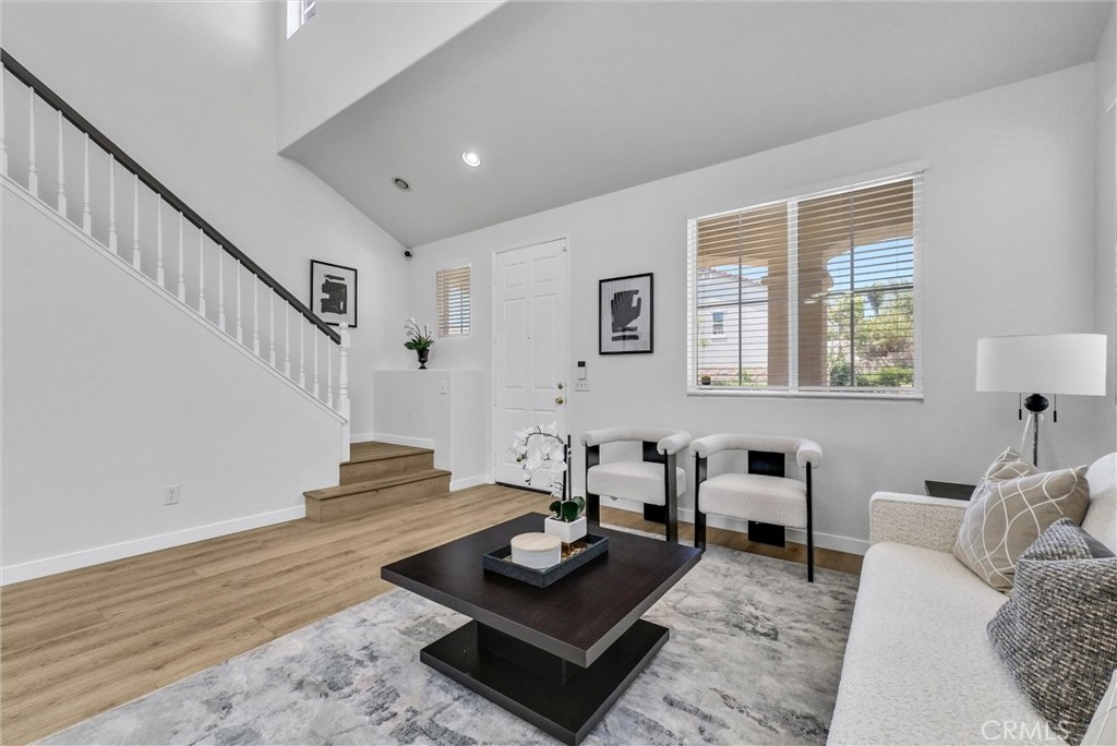 Prepare to be amazed by breathtaking lake and mountains views in this beautifully remodeled, move-in ready single family home. Nestled within a secure gated community with low HOA fees. This beautiful two-story residence offers stunning lake and mountains views, featuring 4 spacious bedrooms and 2.75 bathrooms across 2,418 sq. ft. of living space. Step inside to find a bright and airy interior, freshly painted with new flooring added just last year. The living room boasts vaulted ceilings and an abundance of natural light. The kitchen and all bathrooms have been beautifully updated with quartz countertops, freshly painted cabinetry. The cozy family room opens to a modern kitchen with lake views. Upstairs, you’ll find three good sized bedrooms with waterproof vinyl plank flooring, including a serene master suite with a walk-in closet, private bath and access to a large balcony overlooking the lake. A convenient full bedroom and bathroom downstairs make an ideal space for guests or in-laws. The indoor laundry room adds everyday ease. Sunnymead Ranch offers a low HOA with incredible amenities including a clubhouse, scenic lake, pool, gym, tennis court, basketball court and beach volleyball courts, and so much more. Conveniently located close to UCR, restaurants, shopping centers, and with quick access to the 60 Freeway. Don’t miss this rare opportunity to own lakefront in one of Moreno Valley’s most desirable neighborhoods!