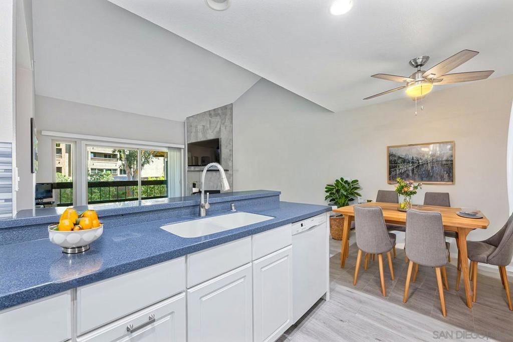 Location, Location, Location! Live your best life in this top-floor, 2 bed-2 bath move in ready Mission Valley condo, just mins from Snapdragon Stadium, SDSU, USD, Fashion & Mission Valley Malls, Old Town, downtown, the beach & more! Enjoy vaulted ceilings in the living room w/ a cozy fireplace, luxury vinyl flooring & spacious primary suite w/ ensuite bath & walk-in closet. The kitchen is upgraded w/ Corian Counters, Bosch & Samsung appliances. Additional features: dual-pane windows, in-unit washer/dryer hookups, an assigned covered parking space with storage, plus additional first-come, first-served parking. Amenities include a resort-style pool, spa, sauna, gym, & racquetball/tennis courts. VA & FHA Approved!