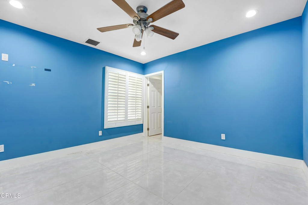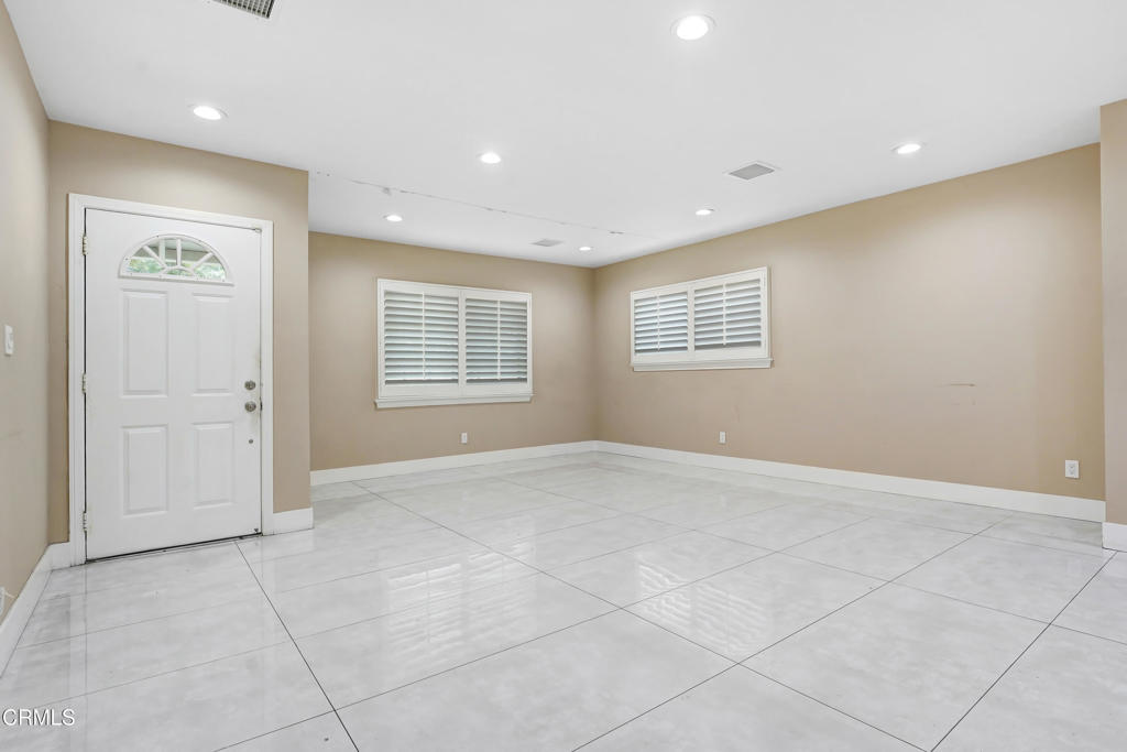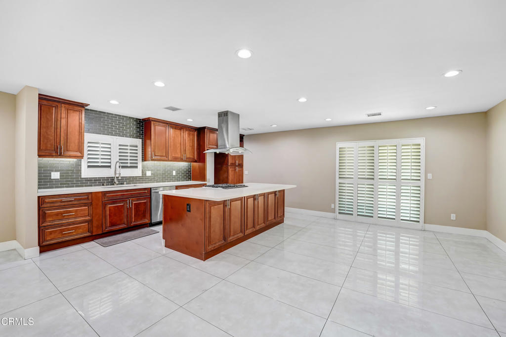 Located in the highly sought-after neighborhood of South Granada Hills, this spacious 4-bedroom, 2-bathroom home seamlessly blends modern upgrades with comfortable living. Step inside to an open-concept floor plan featuring glossy oversized tile flooring, recessed lighting, and a beautifully updated kitchen equipped with rich wood cabinetry, a sleek glass tile backsplash, stainless steel appliances, and a large center island perfect for entertaining. The expansive living and dining area flows effortlessly to the backyard through sliding glass doors that lead to a covered patio with views of a serene fountain centerpiece and a built-in outdoor barbecue area–ideal for alfresco dining.The home offers four generously sized bedrooms, including one with a bold accent wall and ceiling fan, and two well-appointed bathrooms–one with a modern walk-in shower and vessel sink, and the other with classic tiled finishes and ample storage. Additional highlights include dual-pane windows with plantation shutters, central HVAC, and a two-car attached garage. With charming curb appeal shaded by a mature tree and a backyard designed for gatherings, this move-in-ready property is a fantastic opportunity to enjoy peaceful suburban living with easy access to top-rated schools, parks, and freeways.