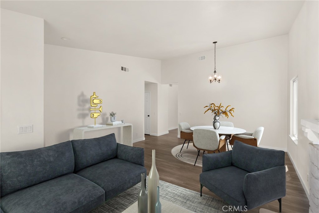 Welcome to this beautifully renovated 4-bedroom, 2-bathroom residence located in the highly sought-after Terra Vista community of Rancho Cucamonga—where comfort, style, and convenience come together seamlessly. Renovated in 2020 and meticulously maintained, this move-in ready home offers a thoughtfully designed layout with distinct living and dining spaces, enhanced by soaring vaulted ceilings that create an airy, light-filled ambiance throughout. The inviting kitchen blends functionality with modern design, featuring quartz countertops, bright cabinetry, and stainless steel appliances—ideal for both everyday living and effortless entertaining. The spacious primary suite serves as a private retreat, complete with an ensuite bathroom and direct backyard access through a glass door—perfect for enjoying quiet mornings or unwinding at the end of the day. A cozy fireplace anchors the living room, while wood laminate flooring and faux wood blinds add a refined, contemporary finish throughout. Enjoy added confidence with recent major upgrades, including a new electrical panel (2024), a brand new AC and furnace (January 2025), and updated fencing completed within the past five years. Step outside to a private backyard designed for effortless living, featuring a fully hardscaped, ultra low-maintenance layout—perfect for outdoor dining, entertaining, or simply relaxing without the upkeep. Ideally situated on a quiet, well-maintained street, this home offers exceptional proximity to premier shopping, dining, and entertainment at Victoria Gardens, as well as convenient access to Interstate 15 and Interstate 210. Enjoy nearby parks including Central Park (Rancho Cucamonga), and the benefit of a neighborhood known for its strong sense of community and pride of ownership. Located within a highly-regarded school district, including Coyote Canyon Elementary School and Rancho Cucamonga High School, this home presents a rare opportunity to enjoy turnkey living in one of Rancho Cucamonga’s most desirable neighborhoods. **Some photos are digitally-staged and altered**