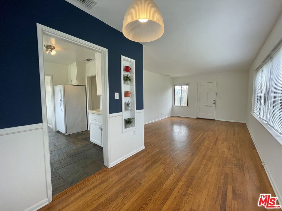 Front unit of this duplex is for lease, it is like having your own house with a front and back door and a large backyard. This is a unique property located on a pretty tree lined street and nestled at the base of Culver Crest, in this much desired neighborhood of Culver City. Only one common wall, spacious Living Room, Hardwood floors, cute dining area, galley kitchen w/stone tile floors, central hall, laundry/service porch, HVAC, only one common wall, detached garage & a large private gated back yard. Excellent Culver City school district. Note the the back unit is currently tenant occupied, so please do not disturb the tenant. Property can be viewed by appointment only.