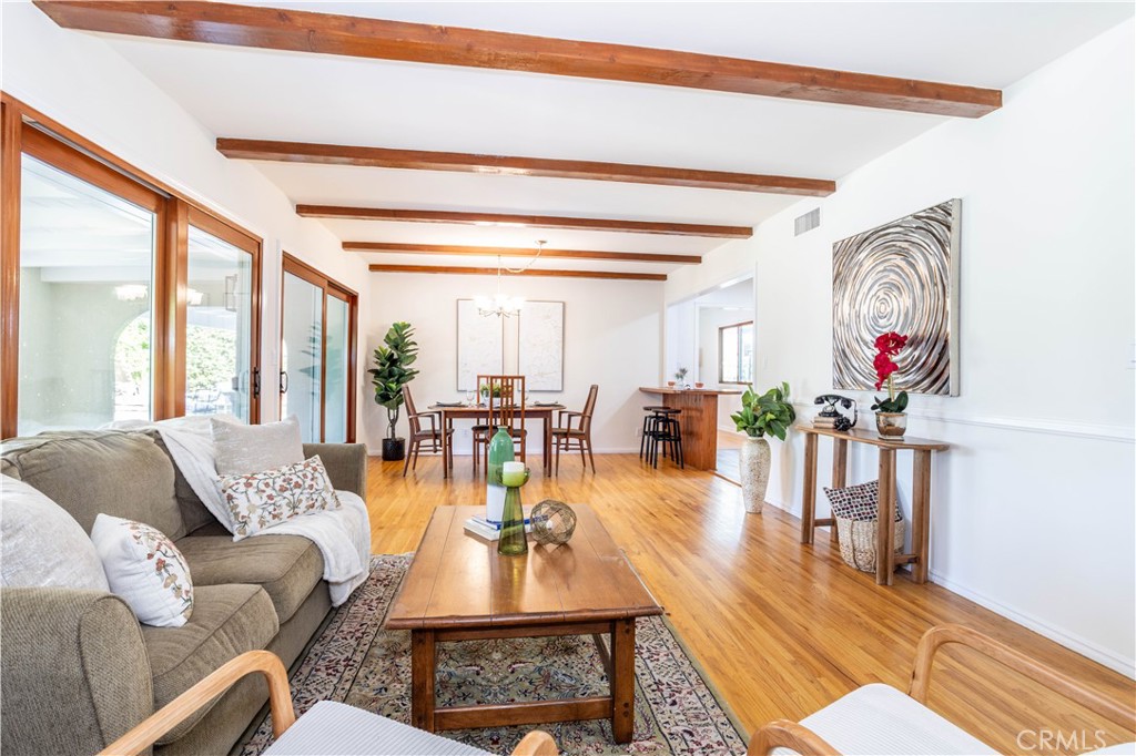 What if your search for a Porter Ranch home for sale led you to a well-maintained single story ranch-style home with character, space, and a backyard that feels like your own private park? If you’ve been moving to Porter Ranch and want a home with great bones, a functional layout, and room to make it your own, this is one you don’t want to miss. This 4-bedroom, 2-bath home offers over 2,000 square feet of living space on a generous 11,667 sq ft lot, complete with a rare circular driveway that adds both curb appeal and everyday convenience. Inside, the layout is thoughtfully designed with multiple living spaces. The living and dining rooms feature beautiful beamed ceilings that bring warmth and architectural character, along with a fireplace that creates a natural focal point. The family room is a separate space, offering flexibility for a media room, playroom, or additional lounge area—ideal for how people live today. The kitchen has been updated with new quartz countertops, a tile backsplash, ample cabinetry, and a breakfast counter for casual dining and gathering. The bedroom layout offers both comfort and versatility, including a primary bedroom with its own attached bathroom. On the opposite side of the home, you’ll find a bedroom off the family room with an adjacent bedroom nearby—creating an ideal setup for in-laws, guests, or a private home office.Step outside and experience a backyard that truly stands out. Designed like a private park, you’ll find multiple walkways, mature greenery, and distinct outdoor areas to relax and entertain. Enjoy a covered patio with classic Saltillo tile, along with a central patio space finished with stone-like pavers—perfect for outdoor dining or gatherings. The expansive yard offers endless potential while already providing a peaceful, usable retreat. Homes like this—single story homes for sale in Porter Ranch with large lots, flexible layouts, and unique outdoor spaces—are becoming increasingly hard to find. Located near award-winning schools such as Darby Elementary and Granada Hills Charter High School, and just minutes from The Vineyards shopping center, parks, hiking trails, freeways, and more, this home offers the lifestyle buyers are searching for.
