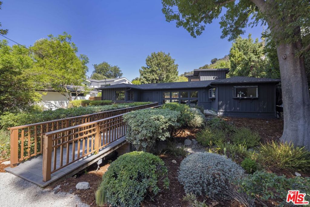 Step into your own private sanctuary in the highly sought-after Carpenter School District! This beautifully remodeled 4-bedroom, 3-bathroom home features an additional 1-bedroom, 1-bathroom guest house and a finished garage flex space, perfect as a gym, office, or creative studio. From the moment you arrive, the property sets a magical tone, surrounded by serene gardens and towering trees. You’ll cross a charming little bridge to reach the front doors, where the home’s character begins to unfold. Inside, every detail has been thoughtfully designed. Lime-washed walls create a timeless, organic feel, complemented by engineered hardwood floors throughout. The living room features stunning floor-to-ceiling windows that flood the space with natural light, creating an airy, uplifting atmosphere. The chef’s kitchen boasts custom cabinetry and marble counters, with a charming breakfast nook tucked in the corner. Each bedroom has been meticulously designed, with none sharing walls, offering ultimate privacy for everyone in the family. The luxurious primary suite includes a private patio overlooking the gardens, a beautiful custom vanity, a soaker tub, and an oversized walk-in shower. The guest house offers a spacious living room with a cozy fireplace, plus a separate bedroom complete with a walk-in closet and full bath – ideal for visitors, extended family, or a private home office. Outdoors, the thoughtfully landscaped grounds provide a completely private retreat, ideal for relaxation or entertaining. Located just minutes from Sportsmen’s Lodge and all the best shops and restaurants along Ventura Boulevard, this home perfectly blends an idyllic private sanctuary with unmatched convenience.