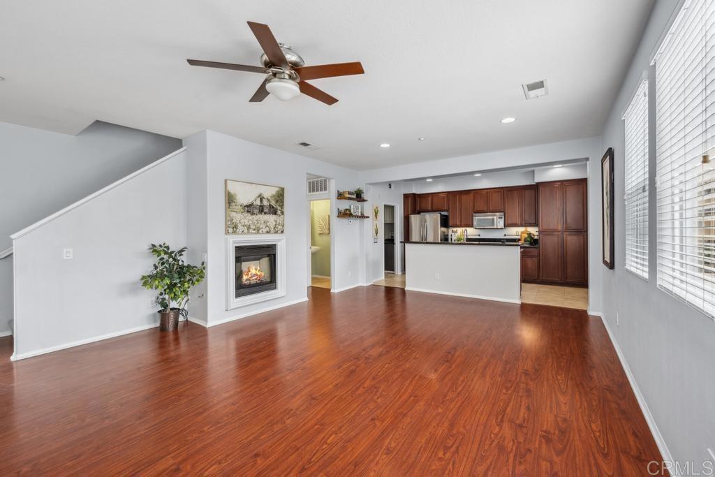 Make sure to add this beautifully maintained 2 bedroom, 2 ½ bathroom townhome, in the heart of Santee’s sought-after Treviso community, to your list! This lovely home offers the perfect blend of comfort and convenience and as an end unit – only one shared wall. Each bedroom comes with its own private en-suite bathroom and walk-in closets. The open concept living area features a cozy fireplace, soaring ceilings and loads of windows to let the natural light flood the space. It seamlessly connects to a gorgeous kitchen featuring stainless steel appliances, making entertaining a delight. There’s a powder room on the main level for guests as well as a private balcony to enjoy your morning coffee or unwind after a long day. The home also features a laundry room with full size washer and dryer, and an attached two-car, drive-thru garage providing secure parking and extra storage! Living here is a dream, you’ll have access to fantastic amenities like a swimming pool, spa/hot tub, clubhouse and BBQ area. Located just minutes from Mission Trails Regional Park, shopping centers, restaurants, and freeways, it’s tucked away and serene, come see for yourself!