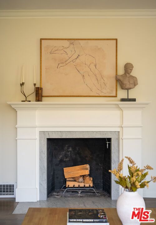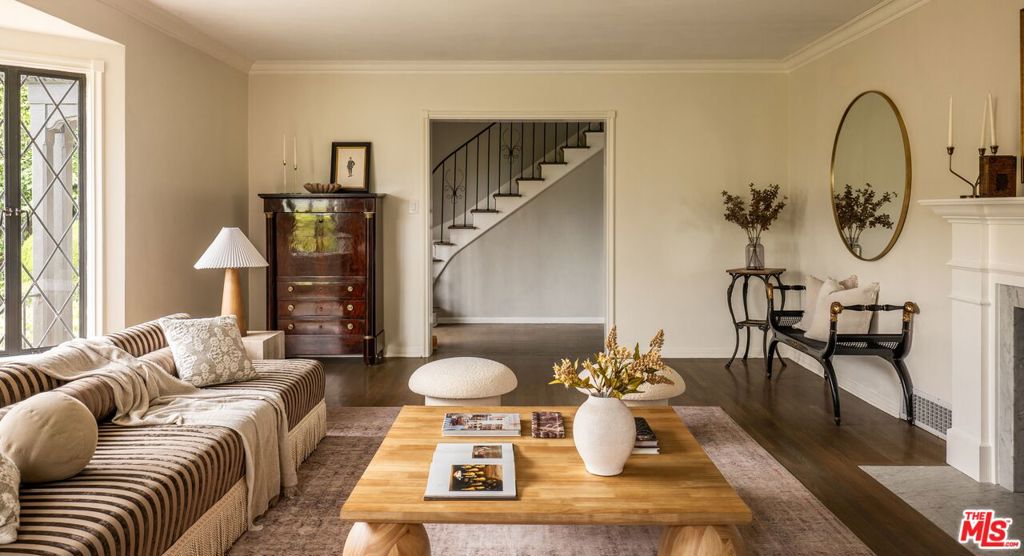 Set behind tall hedges and a private gate on a rare street-to-street lot above the Sunset Strip, this romantic hillside retreat blends 1940s French Country charm with timeless upgrades. With three bedrooms and three bathrooms, the home offers privacy, warmth, and refined design in one of Los Angeles’ most iconic neighborhoods. Sunlight pours through a classic bay window into the formal living room, where original moldings and a traditional wood-burning fireplace set a gracious tone. The adjacent dining room flows into a beautifully appointed kitchen with custom cabinetry, Viking, Miele, and Sub-Zero appliances. A cozy family room nearby creates the perfect space to unwind. Upstairs, the primary suite offers treetop and city views and a serene en suite bath. A guest suite with its own sun-filled sitting room adds charm and versatility, while a third bedroom on the main level is ideal for guests or a home office. Designed for effortless outdoor living, the brick terrace features a dining area and a sitting space with a fire pit perfect for al fresco dinners and fireside evenings, all framed by lush, mature landscaping. Just moments from West Hollywood’s best dining, boutiques, and nightlife – yet tucked in quiet seclusion – this is a rare opportunity to own a home of lasting beauty, thoughtful detail, and understated sophistication.