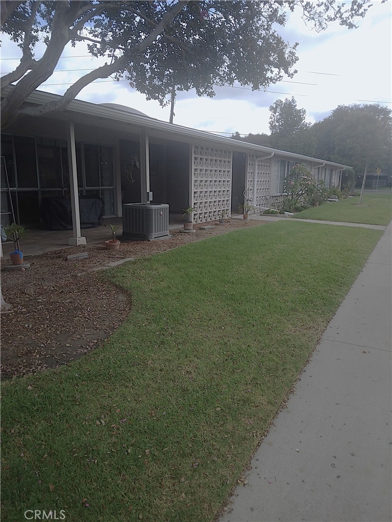Take in the summer in this south facing 2 bedroom 1 bath unit which is situated between the main and north gates. There is central air and has laminate flooring throughout, as well as laminate kitchen and bath counters. The cornice above the living room window blinds adds a finished look. The L shaped patio is light and bright with a skylight and is tiled, has a storage closet and privacy hedge. There is street parking, carports, laundry and greenbelt near by.