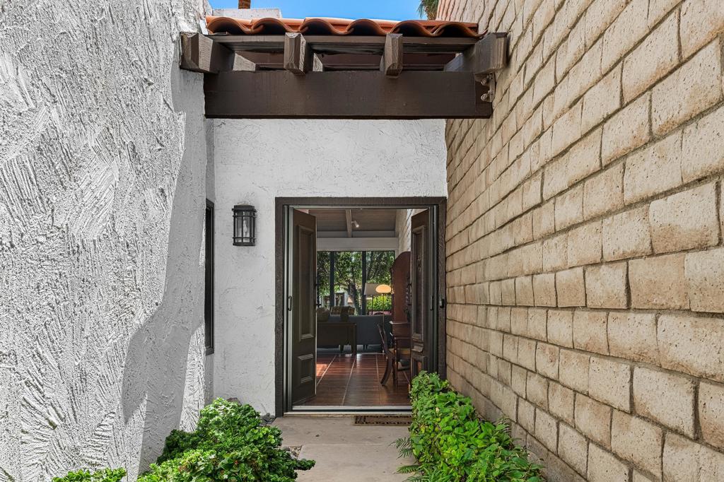 This exceptional 2-bedroom, 2-bathroom home is located in one of South Palm Springs most desired subdivisions. Deepwell Ranch is a boutique guard gated community on land you own. Designed by the renowned architect Barry Burkus, the home is built around an interior atrium that creates an inviting refreshing breeze and abundant natural light into your home all day long. Once inside you are greeted by an open concept with high beamed ceilings, walls of glass and distinctive slump stone walls. The kitchen has been refreshed with recessed lighting, countertops, gas cooktop and double ovens. The large primary bedroom offers tons of closet space and a luxurious spa-like bathroom with double vanity and wall to wall zero entry shower for easy access. Nicely sized guest bedroom with direct access to an updated bathroom which also has zero entry shower. Enjoy outdoor entertaining on the large patio overlooking open greenspace. Deepwell Ranch offers great amenities like 3 pools/spas, a freshly resurfaced tennis/pickleball court, and includes earthquake insurance in your HOA fee. Conveniently located near shopping, dining, and a local coffee house, this home combines location and accessibility in one of Palm Springs most coveted communities.