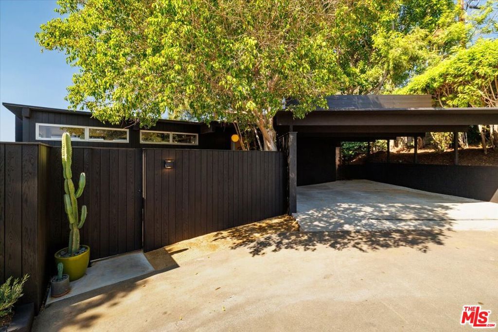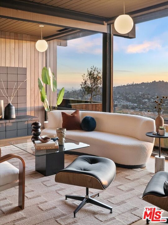 Tucked away on a secluded road, this hillside Neutra inspired Mid-century modern home offers exceptional privacy, striking design, and sweeping panoramic views. Thoughtfully preserved and tastefully updated, this home features clean architectural lines, exposed beams, and expansive floor-to-ceiling windows that fill the interiors with natural light. The open living area centers around a classic mid-century fireplace, creating a warm and inviting focal point. Spacious yet intimate, the layout flows effortlessly from the living and dining spaces to the outdoor deck, ideal for relaxing or entertaining against a backdrop of soaring views. Outside, a private pool is framed by custom decking providing generous space for lounging and tranquil evenings under the stars. Set among pine trees visited by red-tailed hawks, the property offers a rare and unique connection to nature. With its blend of iconic design, modern comforts, and a rare sense of seclusion, this home is a peaceful retreat just minutes from everything… yet feels a world away.