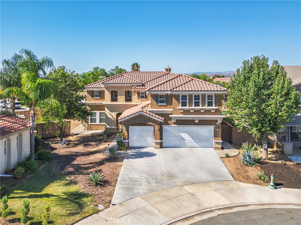 Welcome to 1411 Scenic Way in Perris, California! This impressive five-bedroom, three-bathroom home offers 3,881 square feet of living space on a generous 9,148 square foot lot. Built in 2004, it’s located in the desirable May Ranch community of North of Perris Blvd. Inside, the bright and open floor plan features custom tile flooring, plush carpeting, and elegant shutters throughout. The formal living room with a cozy fireplace connects seamlessly to the formal dining room, creating the perfect space for entertaining. The chef’s kitchen offers abundant cabinetry, a large center island with seating, and a convenient butler’s pantry. On the main level, you’ll also find two spacious bedrooms and a versatile den currently used as a bedroom. A dramatic dual wrought-iron staircase leads upstairs, where more spacious bedrooms, a loft, and a bonus room provide plenty of room for work, play, or relaxation. The backyard is designed for entertaining with ample space for gatherings and the potential for RV parking. Additional features include ceiling fans throughout, a beautifully framed fireplace, a three-car garage with an extended driveway, and a fully landscaped yard, all tucked into a peaceful cul-de-sac. Conveniently located near Lake Perris, within the Val Verde Unified School District, and close to May Ranch Elementary, this home combines comfort, style, and community living in one incredible package.