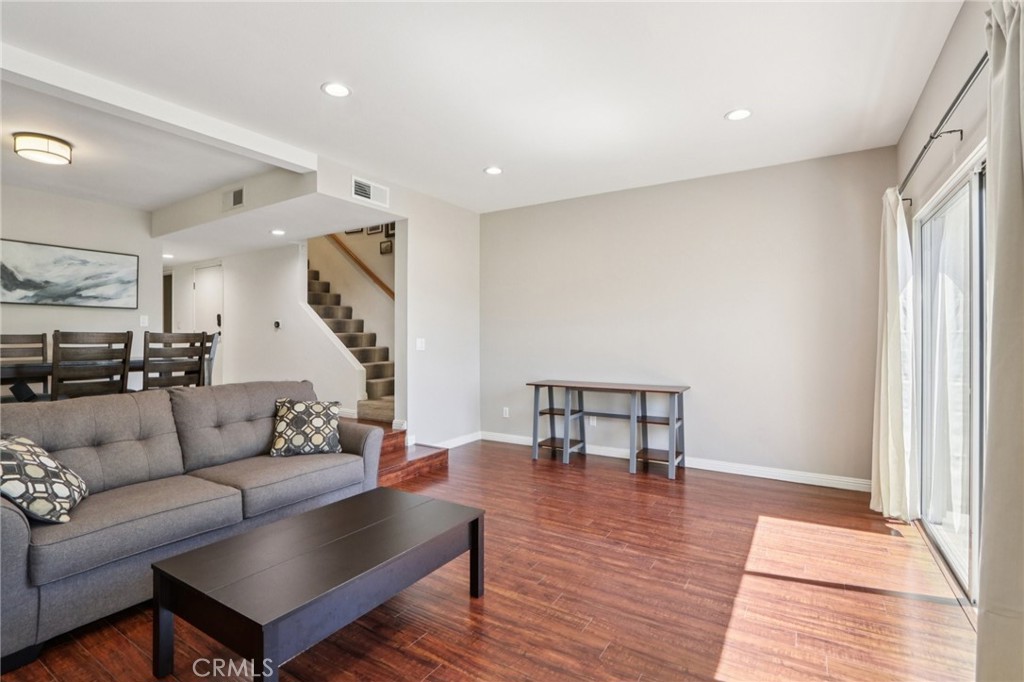 Welcome to this upgraded townhome with captivating valley views in the desirable gated Rinaldi Village. This 2-bedroom, 1.5-bath residence offers a bright, open layout with high ceilings and newer laminate flooring. The remodeled kitchen flows into the dining area, while the spacious living room with fireplace opens to a private, tree-lined balcony—creating a seamless indoor-outdoor feel ideal for both everyday living and entertaining. Upstairs, both bedrooms are well-positioned for privacy, including a generous primary suite with a walk-in closet and scenic views. An attached 2-car garage offers laundry and additional storage. Well located within the community, the home is just moments from the pool and benefits from recent complex-wide improvements, including newer roofs, repaved roads, resurfaced patios, new mailboxes, upgraded gates, and a security camera system. The current special assessment will be paid off by the seller. HOA dues cover water, pool, cable and internet, earthquake insurance, landscaping, and pest control. Easy access to the 118, 405, and 5 freeways offers excellent connectivity, with nearby shopping, dining, and everyday conveniences further enhancing the appeal of this well-located home. Overall, this townhome is a great opportunity to experience Granada Hills living at its best.