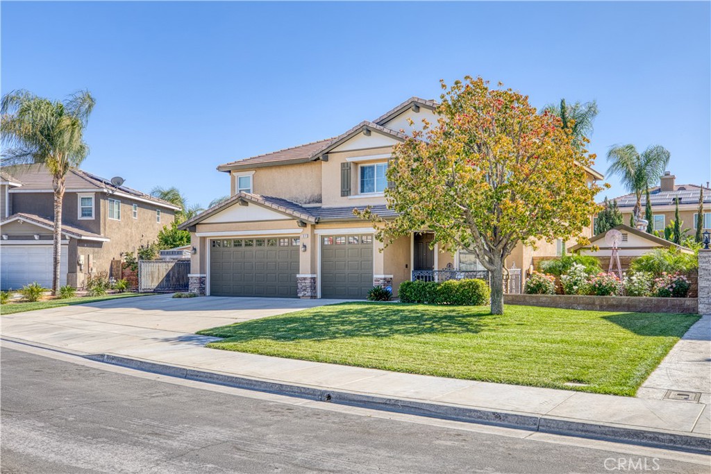 Welcome to 1614 Dragon Fly Circle, a beautifully maintained 4-bedroom, 3-bath home offering 2,662 sq ft of living space on a 0.21-acre corner lot. Built in 2006, this property combines comfort and functionality with a three-car garage and gated RV parking. Inside, you’ll find an open layout with a spacious living and dining area, a cozy family room with fireplace, and a well-designed kitchen featuring a large center island, abundant cabinetry, and stainless-steel appliances. A versatile downstairs open office offers potential for a study, gym, or work space. Upstairs includes a large loft, laundry room with utility sink, and a generous primary suite complete with dual sinks, soaking tub, separate shower, and walk-in closet. Garage features plenty of storage with custom built cabinets and a utility sink for convenience! Outdoors, the backyard is perfect for entertaining, complete with a full-length covered patio, fruit trees, a storage shed, and low-maintenance landscaping. Located 0.4 miles from Bolander Park, this home provides space, privacy, and convenience—all in one of San Jacinto’s most desirable neighborhoods.