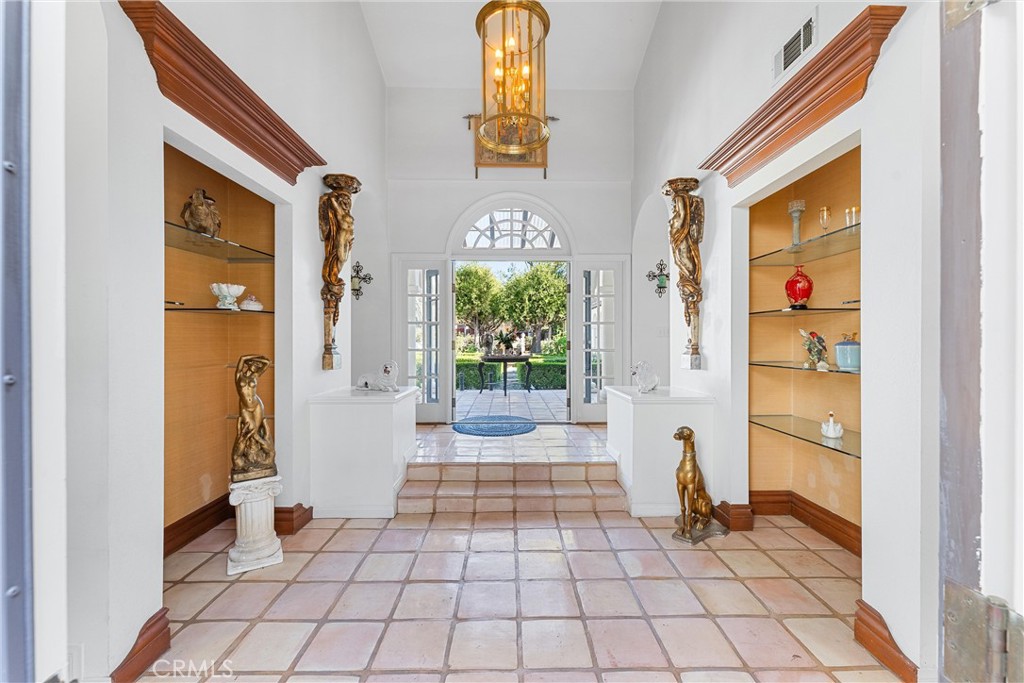 Welcome to 1620 El Travesia Dr. A Custom built Spanish Estate situated on a flat almost 1 acre parcel. Single level home boasts 4 bedrooms and 4.5 bathrooms. The home is architecturally designed in the most exquisite Spanish Style complete with gardens highlighting a Spanish mission style influence. Enter the home through a gated courtyard continue through the hand carved entry doors to the grand foyer. A Well designed floor plan will accommodate a large family, guests & a great home for entertaining. There are two wings with the central living areas in the center of the home. French doors all around provide natural light, views to the gardens, and open to the wrap around veranda. A Primary suite with French doors to view the gardens, a sitting room, wet bar, spa like bathroom & a huge walk-in closet built-in cabinets and shelving. Formal Dining room, formal living room, family room and an informal eating area adjacent to the remodeled kitchen and family room. Makes it a great hang-out area for family and friend to enjoy. High ceilings with wood beams, arches & columns are just some of the custom features. Rose gardens, fruit trees all manicured with walking paths for touring the gardens. Living or visiting this home is like being at a resort everyday. A separate gym area, outdoor bbq patio with a fireplace. Potential lot split to accommodate an ADU, guest house or build another home. Connected to Sewer no septic. Circular driveway, a 3-car garage, finished epoxy flooring, additional storage room. Additional parking can accommodate an RV. A side yard garden with a secondary laundry area for cleaning the outdoor garden supplies. 3 Fireplaces two are indoor & one outdoor in the BBQ patio. One of La Habra Heights’ Iconic properties. You should not miss the opportunity to make this yours & live at your own private resort!
