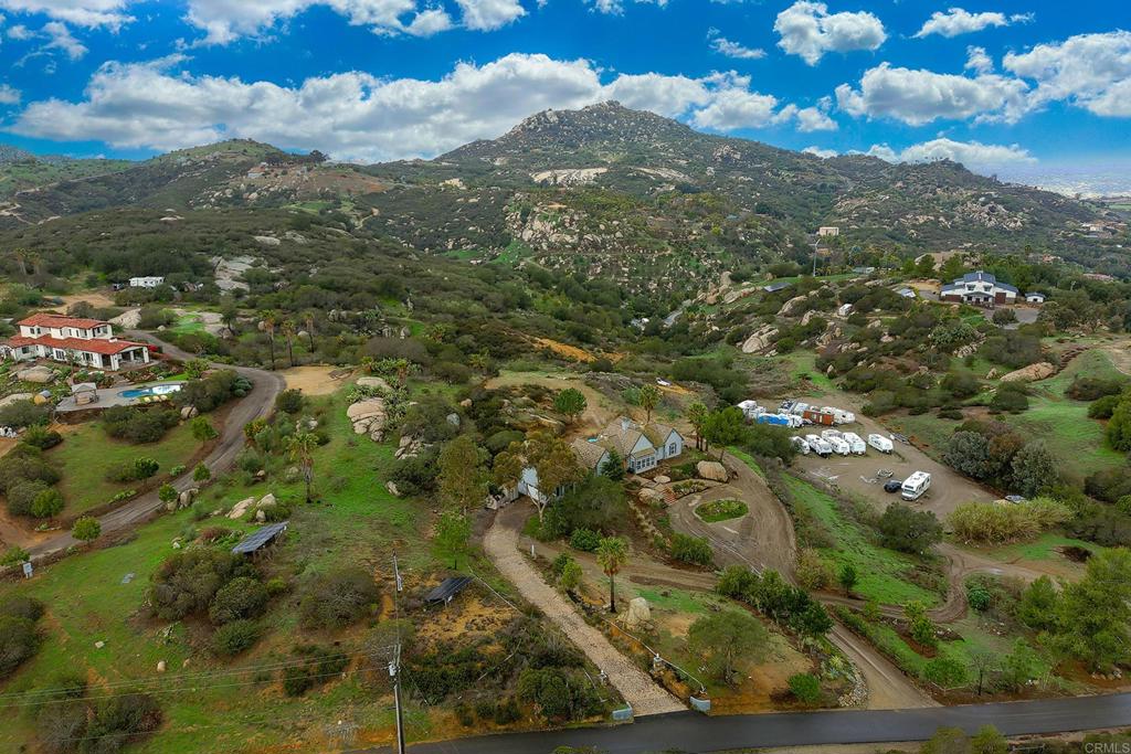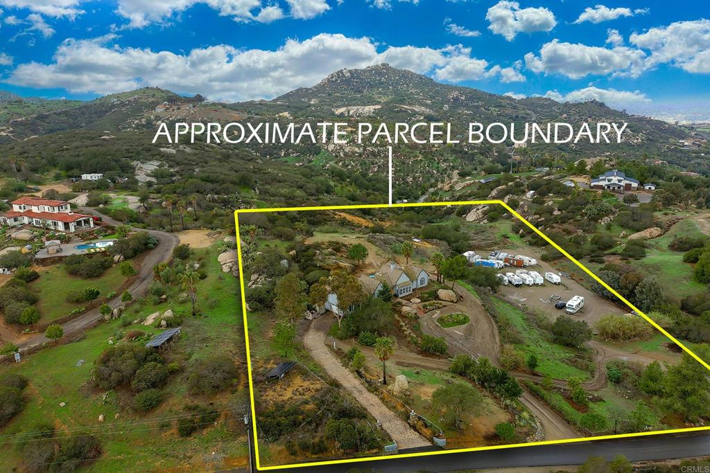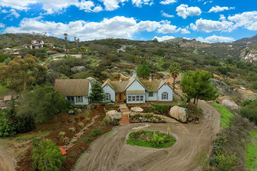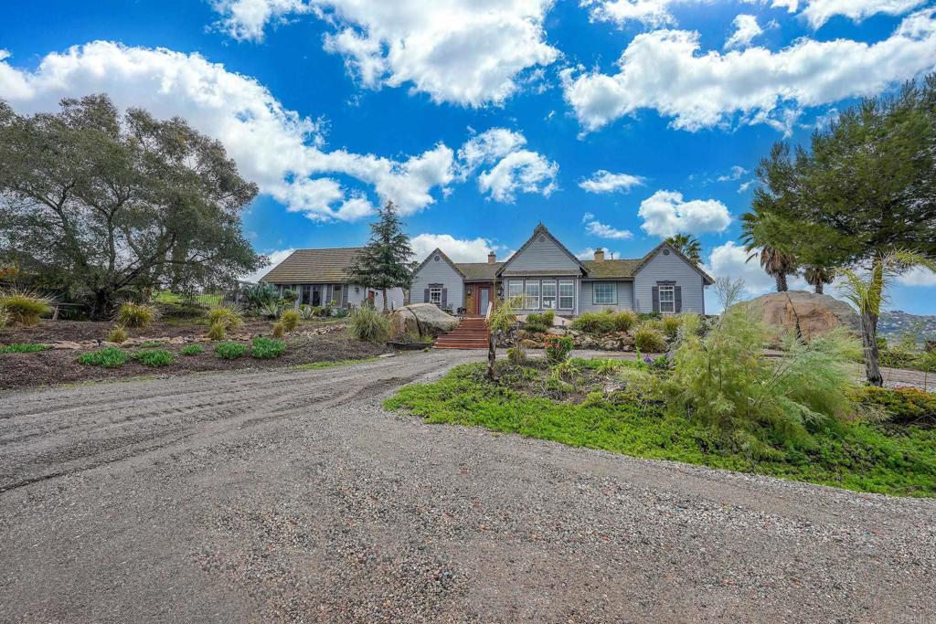 WEST END 8.72 acres with Panoramic views of MT Palomar, pastoral valley, mountains, evening lights, unique rock outcroppings yet usable and well suited for Vineyard, Olive grove, horse facility, PVT workshop/desert toys, RV or? The property features a detached 24’x30′ oversized garage that seller currently utilizes for his workshop with 1 single car door and desirable 400 AMP electric service and 2 sheds. You will appreciate the natural foliage and landscape where privacy abounds. The French Contemporary Ranch styled home features seller owned Solar, varied ceilings heights from 12ft in living and master suite area to 10 ft in kitchen and formal dining rooms to 9 ft in 2 carpeted bedrooms/bath. Enter foyer and attractive 1/2 bath that flows into living area with decorative wall fireplace, crown molding, picture windows, amazing rear bi-folding glass doors and Ponderosa Pine hardwood floors that extend through spacious kitchen and dining room. The kitchen is enhanced by granite counters with tile backsplash, stainless steel appliances, true wood cabinetry, wine cooler and laundry room with rear door access. YOU will appreciate the master suite wing with hardwood floors, forever mtn. views, 3 closets and attractive bath with inviting separate spa/tub from walk-in shower with dual shower heads and dual sink vanity. This property has it all and is a must to see! See attached in documents Property Summary Report.