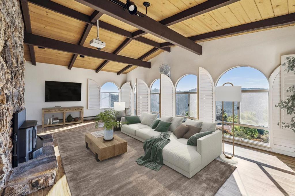 Perched atop the highly desirable Saratoga Hills, this stunning 4-bedroom, 2-bathroom home offers the perfect blend of privacy, natural beauty, and modern convenience. Situated on 2.27 peaceful acres, the property boasts sweeping views of Monterey Bay – and on clear days, even glimpses of the iconic Golden Gate Bridge. Inside, the home features beautiful arched windows that frame the breathtaking surroundings and fill the space with natural light. Thoughtfully designed across three levels, the layout provides both comfort and flexibility. This home is located within the sought-after Saratoga High School District, offering exceptional educational opportunities. Upgrades include a Full House Reverse Osmosis water filtration system for pristine water quality, two Tesla battery backup power systems paired with a generator for reliable energy security, and high-speed AT&T fiber optic internet with Starlink backup, ensuring uninterrupted connectivity for work and play. Despite its tranquil mountain setting, the home is easily accessible via paved, well-maintained roads and is just 15 minutes from the heart of downtown Saratoga. A rare opportunity to own a retreat with iconic views, architectural charm, and serene seclusion – plus the modern amenities that elevate everyday living.