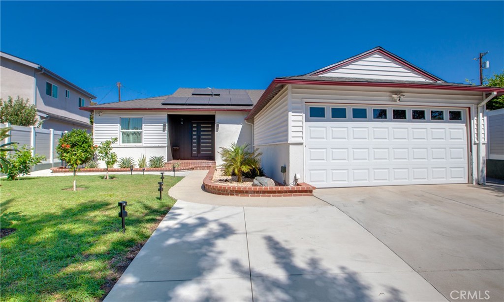 Located on a peaceful cul-de-sac, behind a beautiful gated entrance, this thoughtfully upgraded 3 bed, 2 bath smart home sits on a rare 10,546 sq ft lot in Van Nuys. Designed with attention to detail and long-term quality in mind, the home combines modern smart technology, energy efficiency, and a spacious outdoor layout. Features include app-controlled smart lighting throughout, keypad entry door, smart garage opener, Doorbird video intercom at the front gate, and a full Ring security system with motion-activated floodlight cameras around the perimeter. The kitchen shines with KitchenAid stainless steel appliances and quartz countertops, creating a modern and functional space for cooking and entertaining. Bathrooms have been upgraded with modern double sinks and a sleek stand-up shower, blending style with practicality. Recent upgrades include newly installed solar panels, a new roof, complete new plumbing, tankless water heater, and new insulation. The home also offers a fully updated 200AMP electrical system with a sub panel in the garage, ideal for a future JADU. A Level 2 (50AMP) EV charger is already installed. Enjoy the private gated pool, a covered patio connected to the home, and a charming gazebo perfect for entertaining or relaxing in your backyard oasis. There is plenty of space to expand or create your ideal outdoor retreat. Don’t miss this rare opportunity to own a move-in-ready, smart, and sustainable home that perfectly balances luxury, comfort, and future potential. A true Van Nuys gem waiting for you to make it your own.