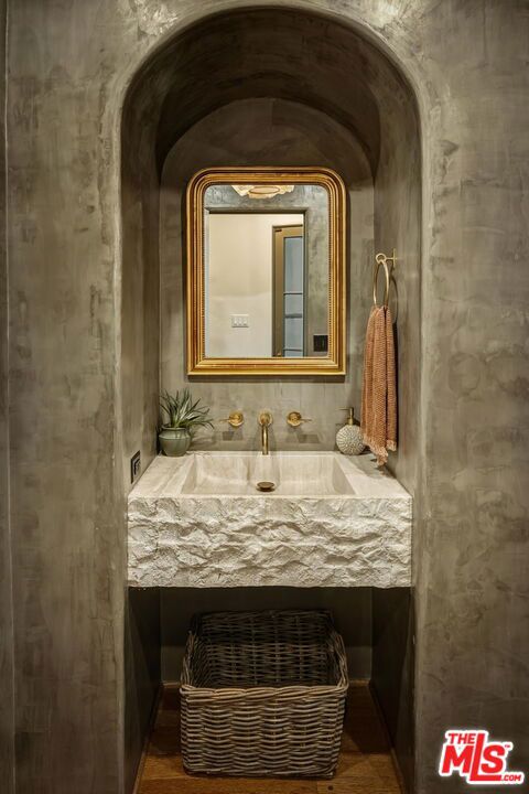 Nestled at the end of a long gated drive in Lower Mandeville Canyon, La Casa De Flores is a Spanish Revival estate of rare provenance and timeless beauty. Designed in 1929 by acclaimed architect John Byers and thoughtfully reimagined for modern living, the home sits on nearly an acre of lush, secluded grounds, offering an atmosphere that feels both grand and deeply inviting. Inside, the craftsmanship of the original era remains intact — with wood-beamed and coffered ceilings, rich hardwood floors, graceful French doors, and hand-crafted casement windows. Sculptural designer lighting fixtures punctuate the interiors, enhancing the interplay of light and texture throughout. The formal living room, framed by garden views, is anchored by a stone fireplace and crowned by thick, solid wood beams. The formal dining room opens to verandas on both sides, creating effortless flow for gatherings, while the warm, inviting family room is wrapped in custom built-ins. The fully remodeled gourmet kitchen blends elegance and function with stone countertops, custom cabinetry, and an expansive dual-surface marble and butcher block island. A Lacanche range sits within a bespoke alcove, complemented by a walk-in pantry. Adjacent, the glass-topped atrium breakfast room dazzles with direct access to the outdoor kitchen and al fresco dining patio outfitted in vibrant Spanish tile and an original fountain. The primary wing offers a serene retreat with a private covered balcony, far-reaching canyon vistas, a corner fireplace, and a designer walk-in dressing room. Its en suite bath, bathed in natural light, features dual marble vanities and a custom-tiled shower. Four additional guest suites, including two joined by a Jack-and-Jill bath, provide comfort and flexibility. A detached office with a tranquil handpainted mural and expansive windows offers an inspiring workspace, while a coved wine cellar adds an indulgent touch. The grounds are a true sanctuary — mature fruit trees, flowering gardens, peaceful fountains, and sweeping lush views frame a 55-foot swimmer’s pool, brick patios, and a pergola lounge with firepit. Accessory structures and a three-car garage complete this rare and private compound, just moments from Brentwood’s finest restaurants, boutiques, and top-rated schools. Blending architectural pedigree with modern comfort, La Casa De Flores is not merely a home — it’s a priceless work of art in one of Los Angeles’ most coveted neighborhoods.