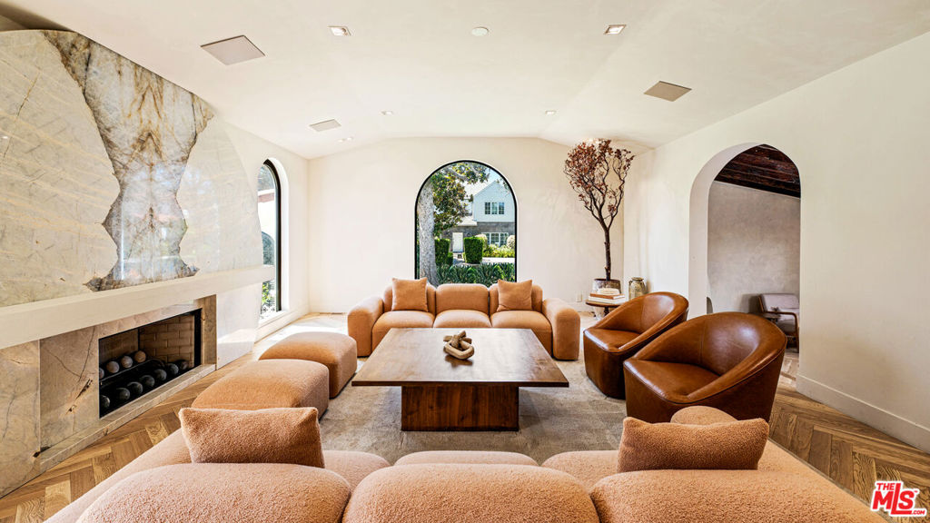 Welcome to this timeless 4-bed, 5-bath Spanish villa, just minutes from Hancock Park. Thoughtfully designed with plastered walls, graceful arches, and light-filled interiors, the home offers a seamless flow: a guest suite downstairs, three en-suite bedrooms upstairs, plus a versatile bonus room. The primary suite is a true retreat with a spa-like bath and oversized walk-in closet, while the chef’s kitchen impresses with dual refrigerators, dual dishwashers, and top-tier appliances. Step outside to your private sanctuary complete with pool, spa, built-in BBQ, outdoor shower, fireplace, and TV perfect for effortless year-round entertaining. A fully integrated smart-home system puts everything at your fingertips, blending authentic Spanish charm with modern convenience in one of LA’s most coveted locations.