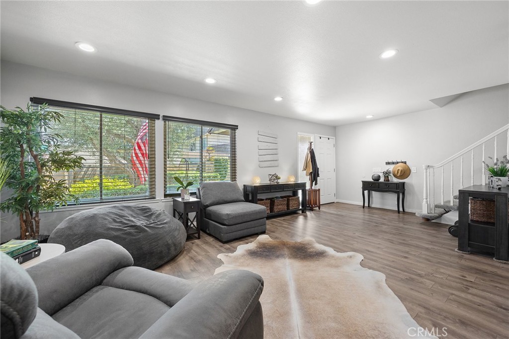 MUST SEE ONE OF A KIND NEWPORTER MODEL! Stunning end unit in the tranquil Tiburon community with the largest floor plan and a two car attached garage with custom storage and utility sink! This quiet corner end unit home boasts 2096 sq ft and features an inviting open-concept living space, perfect for modern lifestyles. A large china cabinet and pantry create additional storage and convenience off of the kitchen. The main level boasts a formal living and dining area, ideal for entertaining guests. Step outside to your private patio area perfect for grilling, alfresco dining or simply enjoying the outdoors. The heart of the home is the renovated kitchen, complete with a center island, dining area, elegant quartz counters, and top-of-the-line stainless steel Cafe’ appliances with bluetooth capability. The adjacent family room with a cozy fireplace creates a warm atmosphere for relaxation. Lavish laminate flooring flows seamlessly throughout the space, complemented by central air and heat to keep you comfortable year-round. Custom dual pane windows with retractable hidden screens not only enhance the aesthetic but also allow for a refreshing breeze. A built-in speaker system on the lower level adds a touch of luxury to your daily life. Upstairs is upgraded with beautiful, new vinyl wood flooring throuought. The primary suite is generously sized, featuring two walk-in closets and an en suite bath with shower. The two additional bedrooms are spacious and inviting and share a beautifully updated bathroom. The convenience of an updated attached 2-car finished garage provides ample storage space, as well as convenient laundry space and a utility sink. Residents of this community can indulge in the benefits of the 5 community pools, parks/playgrounds, community clubhouse, walking trails and a lush green belt.