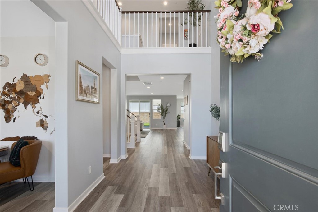 Absolutely stunning and thoughtfully upgraded, this beautiful home in the highly desirable Skyline community offers the perfect blend of style, space, and functionality. Boasting 4 spacious bedrooms, an office/den, a versatile flex room, a large upstairs loft, and 2.5 bathrooms, this Lyra Plan 2 home has room for everyone! From the moment you step inside, you’ll be greeted by an abundance of natural light and an open, airy layout that’s ideal for modern living and effortless entertaining. The expansive great room seamlessly connects the living, dining, and kitchen areas, creating a welcoming atmosphere for gatherings both large and small. The chef-inspired kitchen is a true showstopper, featuring sleek quartz countertops, timeless white shaker cabinetry, upgraded Café appliances, a large walk-in pantry, and a stylish single-basin stainless steel sink. Beautiful luxury vinyl plank flooring flows throughout the main level, complemented by recessed lighting and a soothing neutral palette. Dual sliding glass doors open to a perfectly manicured backyard oasis complete with low-maintenance turf, a spacious covered California Room patio, and ample space for kids and pets to play. This home includes a bonus flex room just off the kitchen, perfect for a home gym or playroom, plus a separate den/office with custom built-ins, ideal for working from home or creating a quiet reading retreat. Upstairs, a large loft offers even more space to relax or play, along with a laundry room and three secondary bedrooms that share a hall bathroom with quartz countertops, dual sinks, and a tub/shower combo. The private primary suite is a true retreat, featuring a spa-like ensuite with dual vanities, an oversized soaking tub, separate shower, generous walk-in closet with organizer, compete with shoe rack. Additional highlights include a two-car garage with direct access, owned Solar, and a truly unbeatable location within the Skyline community. As a resident, you’ll have access to exceptional amenities, including both the Lookout and Basecamp’s resort-style pools and parks, clubhouses, gym, BBQ area, splash pad, and panoramic valley views, plus miles of scenic hiking trails. Convenient access to shops, dining, and the 14 Freeway via Sierra Highway, Golden Valley, or Whites Canyon make this a commuter’s dream. This is more than just a home, it’s a lifestyle. Don’t miss your chance to own one of Skyline’s most sought-after floor plans in one of the community’s premier neighborhoods!