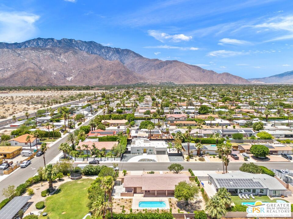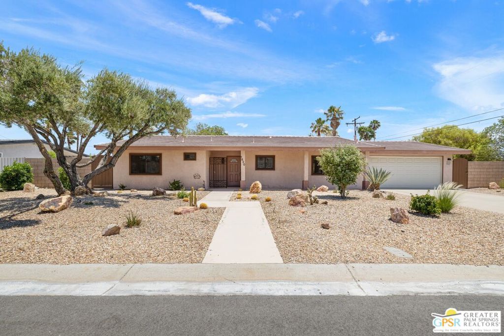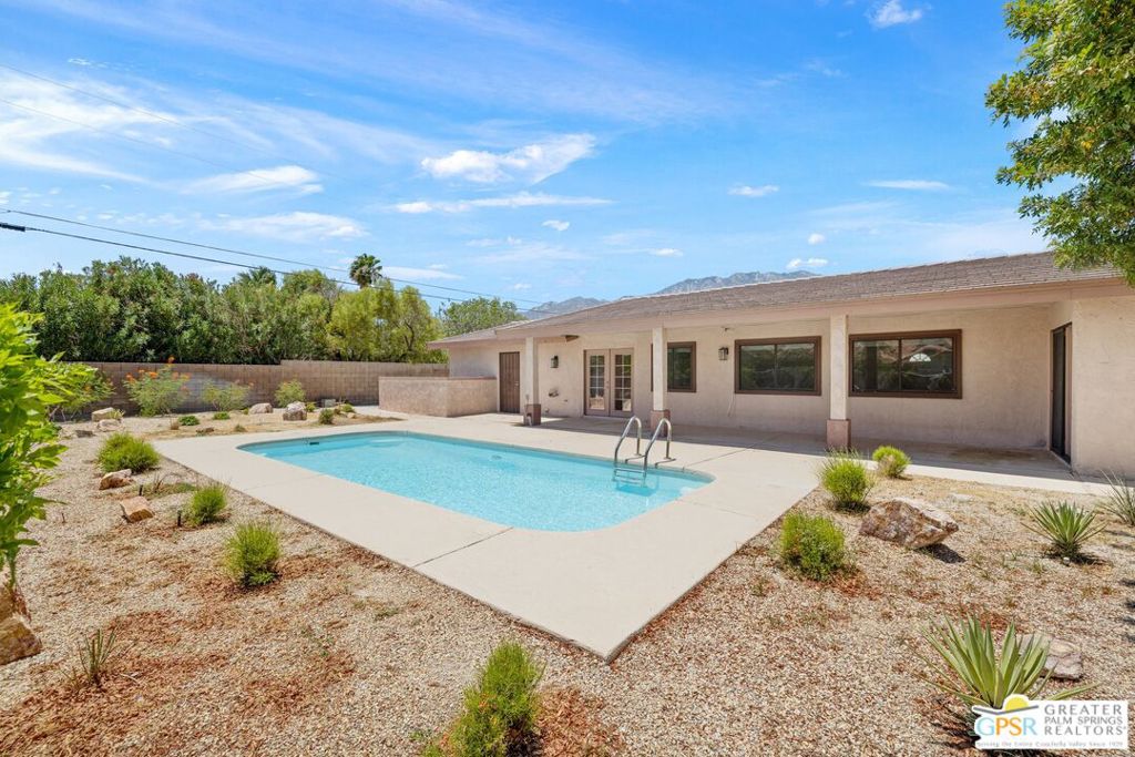 The One You’ve Been Waiting For! Check out this 2 bed + Den/Office/Bonus Room, 2 bath home in Desert Park Estates with mountain views, seamless indoor-outdoor flow, and a private pool perfect for relaxing or entertaining. Inside, a flexible floor plan offers space for both a traditional living area and a den, office, or media room. French doors open to the backyard, where a sparkling pool and generous covered patio set the scene for effortless desert living. The front kitchen captures stunning views of the San Jacinto Mountains and features granite counters, under-cabinet lighting, and an adjacent dining area. Tile floors and recessed lighting flow through the main living spaces. The primary suite offers patio access, new carpet, and an updated ensuite bath. The guest bedroom, also with new carpet, is near a second updated bath with a walk-in shower and floor-to-ceiling tile. Custom built-ins in the hall add storage and style. Additional highlights include Anderson windows, custom blinds, updated bathroom tile, and desert-friendly landscaping. Laundry area in the 2-car garage. Pride of ownership shows throughout. Take the Matterport Virtual Tour for a better sense of flow.