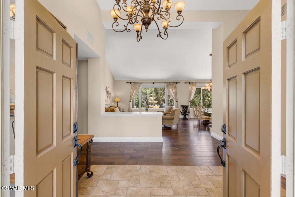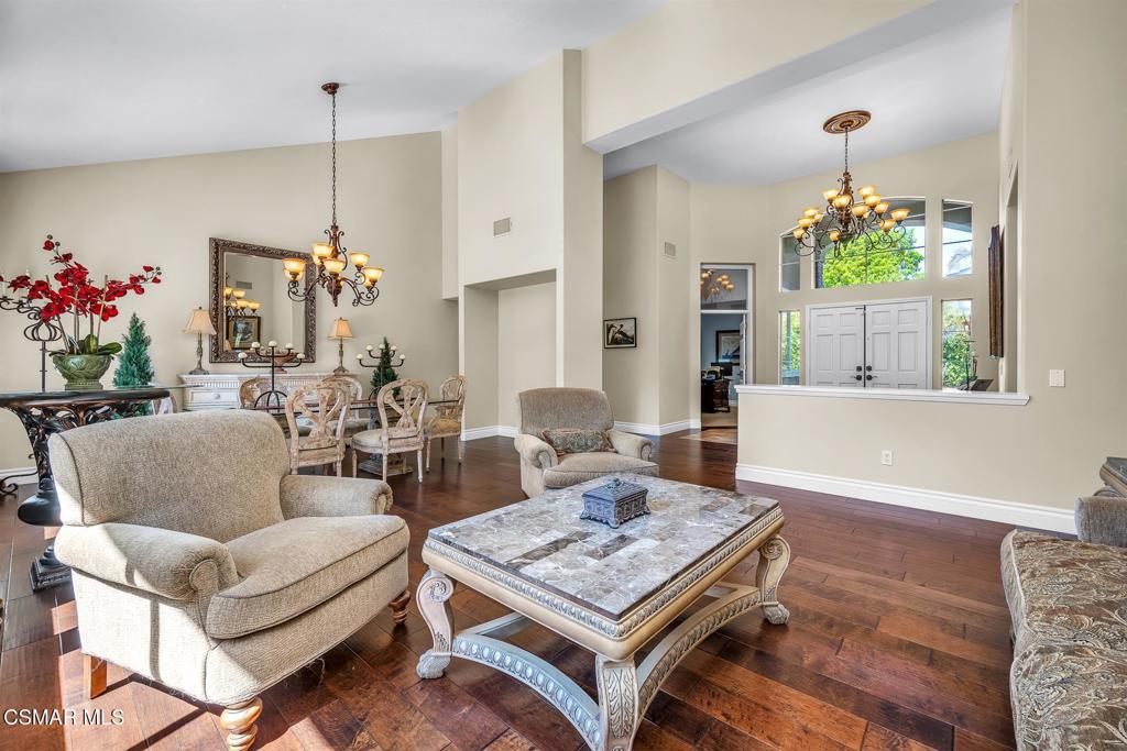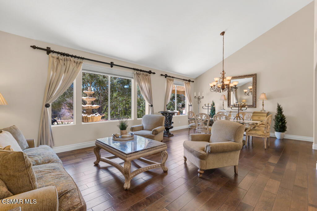 This private, single-story estate in Newbury Park offers a rare blend of timeless design, natural beauty, and lifestyle flexibility-set on over three-quarters of an acre. Tucked behind a long private drive with potential for gated access, this 4,417 sq ft residence delivers expansive single-level living, indoor-outdoor flow, and stunning mountain views.The backyard is a true retreat, backing to open space with multiple patios, a sparkling pool and spa, and a 740 sq ft covered pavilion with fireplace, TV hookups, and built-in outdoor kitchen. Fruit trees, garden beds, and mature landscaping complete the experience.Inside, wide-plank hardwood and slate tile floors connect generous living and dining spaces. The kitchen offers ample storage, a large granite island, built-in refrigerator, double ovens, and a five-burner gas range-ready to be personalized by the next owner. A full laundry room, mudroom, and an entertainer’s bar with passthrough window offer practical everyday function.Custom 16-foot lift-and-slide doors open completely to the backyard, blending the interior with nature. The layout includes a guest/in-law suite with separate entrance, all en-suite bedrooms, and a spacious primary retreat. The oversized lot also offers room for a future ADU.Energy-efficient and safety-minded, the home includes solar with two Tesla Powerwall 3 units, ember-resistant roof and vents, a dedicated fire gel pump system, dual Navien tankless water heaters, fiber internet, and fresh interior/exterior paint.Motivated sellers have thoughtfully repositioned this offering to create opportunity. A rare single-level estate with exceptional privacy, just minutes from trails, open space, and the 101.