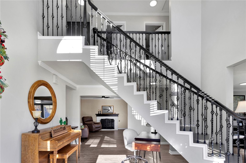 This home will WOW you from the moment you arrive! Arriving here you will love the corner lot with a cement pad for RV/trailer parking, located just a few steps from the lake and fishing area. The driveway & walkway was recently poured with newer cement to give a fresh feel to the exterior. Entering the home you are greeted by the most beautiful staircase adding to the WOW factor. Plenty of space for the whole family with a formal living and dining room, spacious kitchen and breakfast nook, and cozy family room with a beautiful fireplace perfect for those chilly nights. Down stairs there is a guest room and full bathroom and laundry room that leads to the garage. Up stairs are the remainder of the guest bed/bathrooms and the primary suite that will make you feel like you’re on vacation every day with beautiful views from the balcony without the neighbors blocking it! Headed to the back yard there is an enclosed patio with a spa, the perfect mix of indoor/outdoor living space. The backyard feels very private and spacious with mature landscaping and a storage shed. There have been so many upgrades to this home since the current owners purchased it, including replacing the attic insulation, all new paint, flooring, and light fixtures throughout, the kitchen & every bathroom has been remodeled, the primary bedroom closet was custom built and new window screens. There is gas and electric hook ups for the dryer & spa, while the stove is natural gas!