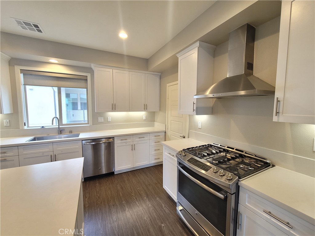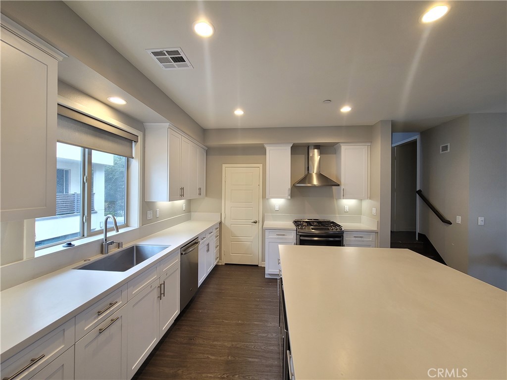 Welcome to modern luxury living in the heart of Northridge! This stylish townhouse at The District offers 2,078 sq ft with soaring ceilings, recessed lighting, and tasteful upgrades. The first floor includes a front porch, attached 2-car garage, and private guest suite. The open-concept second level features a spacious living room, dining area, balcony, and chef’s kitchen with quartz counters, walk-in pantry, and GE stainless steel appliances, plus built-in surround sound. Upstairs, the primary suite boasts dual vanities, frosted glass barn door, walk-in closet, and private water closet, with two additional bedrooms sharing a full bath. Enjoy a gated community with pool, spa, BBQs, and events, all near shopping, dining, and entertainment!