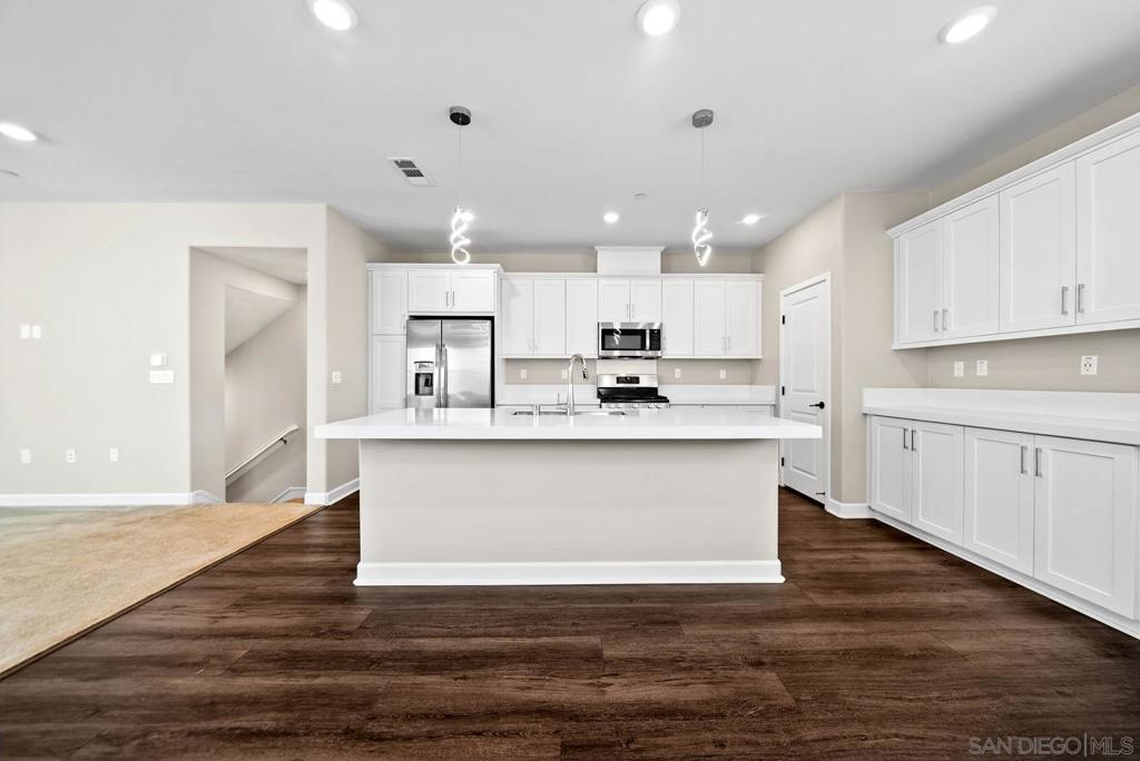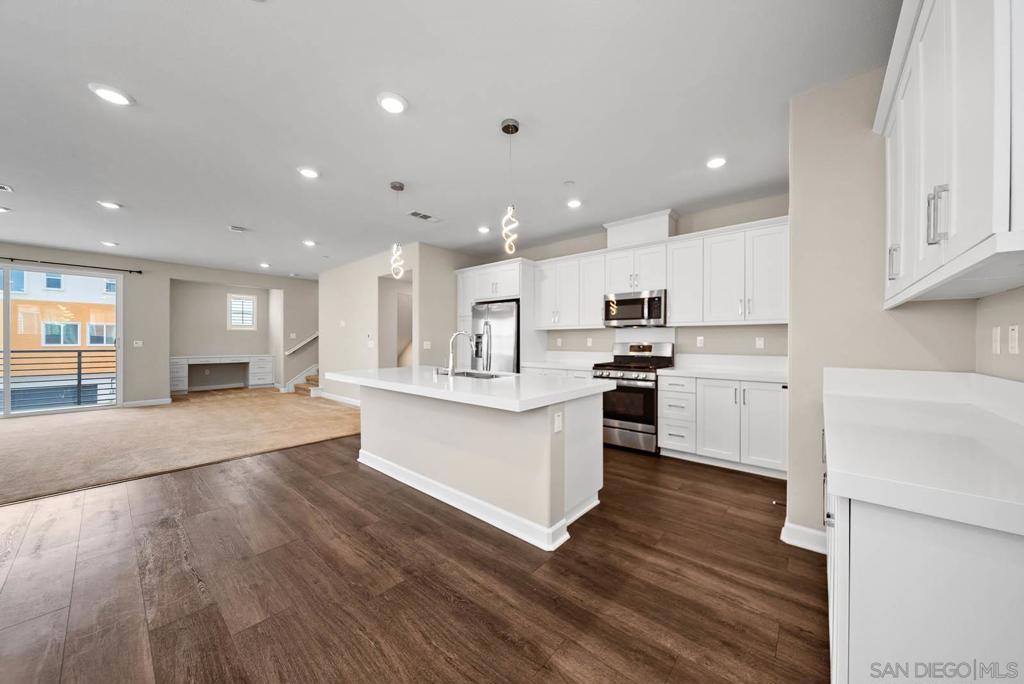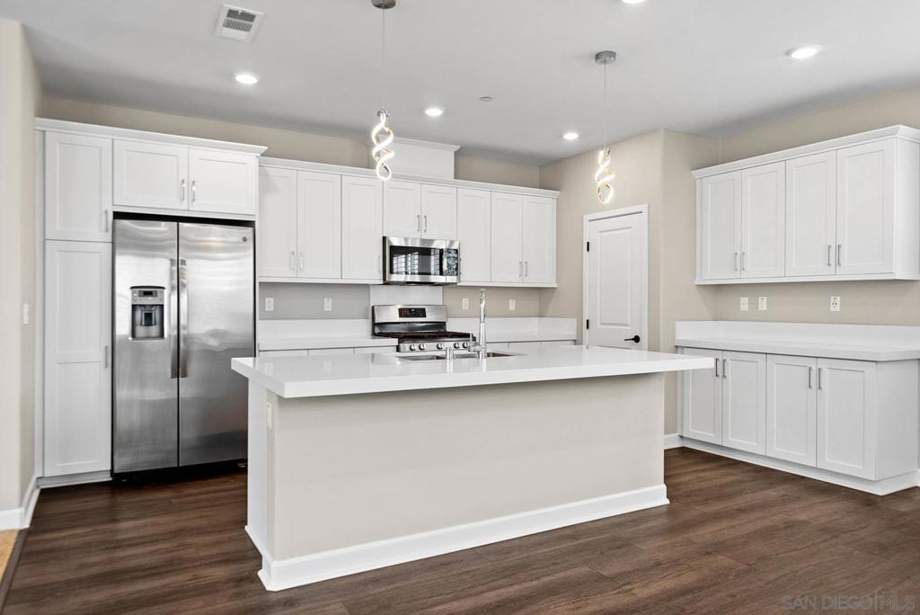 Experience modern living in the heart of Millenia! This dynamic community places you within easy reach of parks, promenades, shopping, dining, and everyday conveniences. Step inside this beautifully upgraded end unit rowhome featuring 4 bedrooms and 3.5 bathrooms—including a private first-floor bedroom and full bath, perfect for guests, in-laws, or a home office. Designed with both style and function in mind, the home boasts luxury vinyl plank flooring, custom fixtures, and a bright, open-concept floor plan. The sleek kitchen showcases white cabinetry, quartz counters, a spacious island, and stainless steel appliances, making it the true centerpiece of the home. The top floor includes three additional bedrooms, highlighted by a generous primary suite with walk-in closet and spa-like bath offering dual vanities and a soaking tub. Energy efficiency comes built-in with solar, while an attached 2-car garage and in-unit laundry add everyday convenience. Community amenities include a sparkling pool, relaxing spa, and multiple play areas. All of this just across from Otay Ranch Town Center, with nearby trails, Otay Lake, and exciting new dining options like Common Theory Public House and Sura Korean BBQ just minutes away. Don’t miss your chance to own in one of Otay Ranch’s most vibrant neighborhoods!