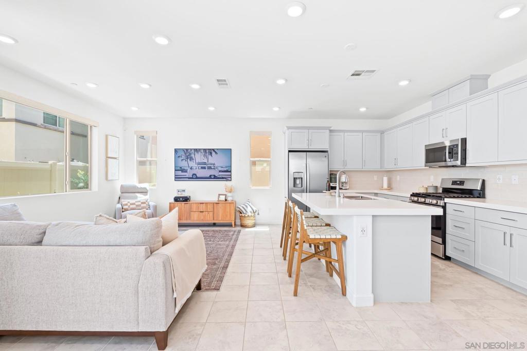 *BEST VALUE IN CANOPY GROVE!* Light and bright, stunning single family home in the fabulous planned community of Canopy Grove in Escondido! Completely turn-key and move-in ready. Do not miss out on this 3 bedroom, 2.5 bathroom home with upgrades throughout. Enjoy a full sized 2 car garage with storage, driveway, upstairs laundry, half bath downstairs and a full open concept kitchen with a large island. And there is HVAC and FULLY PAID FOR SOLAR! Take advantage of all of the resort-style amenities included in this community including walking/biking trails, huge pool, jacuzzi, BBQ, playground, pickleball courts and more! A playground and dog park sit at the end of the cul-de-sac, just a couple houses away. All included in a very low HOA. Close to the 15 freeway means this home is just a quick trip to most of San Diego. Enjoy the community-focused lifestyle of this master-planned community. Don’t miss this one!