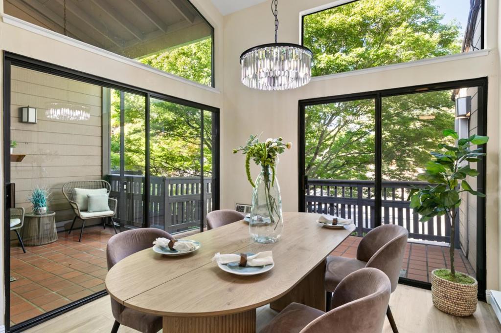 Welcome to this spacious and beautifully updated 1,884 sq. ft. home in a quiet, tree-lined Mountain View community. With 3 bedrooms and 3 baths, including a rare dual-primary setup, it offers both comfort and flexibility. The main level features 2 bedrooms and 2 baths, while the upper level includes a private suite and loft, perfect for a home office. The bright living room boasts soaring ceilings, oversized windows, and a cozy fireplace. Three sliding glass doors lead to a shaded deck for seamless indoor-outdoor living. Enjoy a remodeled kitchen with quartz countertops, stainless steel appliances, and quality cabinetry, plus new flooring and plush carpet throughout. Additional features include indoor laundry, solar panels, and an HOA that covers water, hot water, sewer, and more. Ideally located in Mountain View near shopping, dining, major freeways, and top-rated Los Altos High School, this home offers the perfect blend of space, style, and convenience.