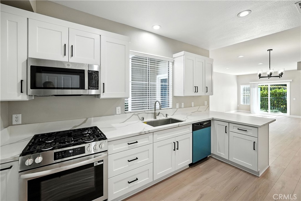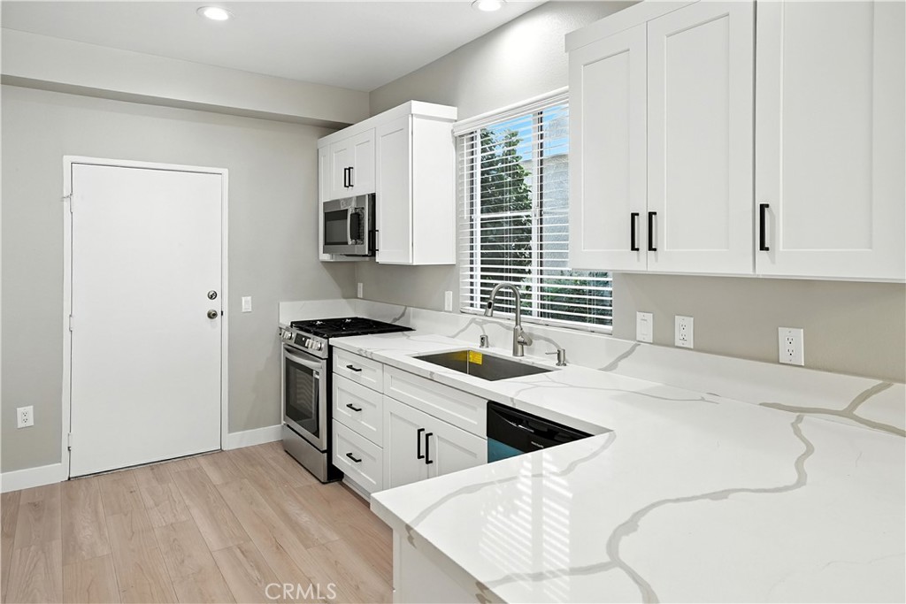 Beautifully Updated 3 Bed / 2 Bath Townhome in Bordeaux! Welcome to this beautifully updated 3-bedroom, 2-bath townhome in the highly sought-after Bordeaux community! This spacious and stylish home boasts quartz countertops, brand-new stainless steel appliances, and a modern stainless sink and faucet in the kitchen. Enjoy the fresh look and feel of new paint, new doors, and durable laminate wood flooring throughout. Upstairs, you’ll find all three bedrooms, including a cozy primary suite with a private bath, plus a laundry room and additional storage for added convenience. The bright and inviting living area opens to a private patio, ideal for relaxing or entertaining. You’ll also appreciate the direct access garage and in-unit laundry. This gated community offers resort-style amenities including a pool, spa, BBQ area, outdoor fireplace, gym, and recreation room—everything you need for comfortable, modern living. Don’t miss out on this move-in-ready gem!