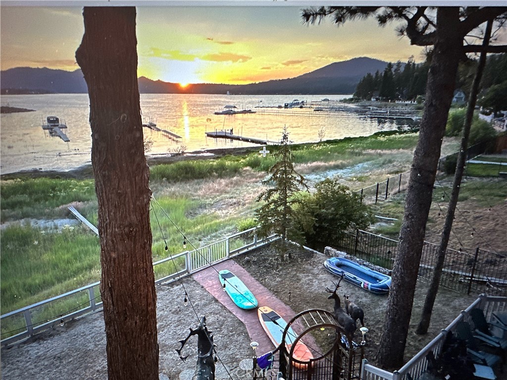 Rare opportunity to own a spacious lakefront retreat in Eagle Point Estates, complete with a private dock and stunning lake views. Perfect for large families, entertaining, or investment potential, this impressive three-level home offers 5 bedrooms and 5 bathrooms (4 bedrooms and 4 bathrooms on title) with flexible living spaces throughout. The main level features a beautiful primary suite with an adjoining office or spa room—the spa is currently covered but fully operable. The living spaces open to a large deck overlooking Big Bear Lake, where you can relax and take in breathtaking scenery, including incredible views of the annual Big Bear Lake Fourth of July Fireworks Show. The lower level is designed for entertainment and extended stays, featuring a game room area, interior swim spa, two kitchenettes, laundry room, and access to a covered patio. Go outside to enjoy the extra large gazebo and additional deck areas, perfect for lakeside gatherings. The third level includes a loft-style bedroom with its own bathroom and elevated views, along with abundant storage space throughout the home. Additional features include three furnaces for efficient climate control, a central vacuum system, and two recently updated water heaters. Parking is plentiful with an extra tall 2-car garage and space for 4–6 additional vehicles. With its prime lakefront location, private dock, expansive layout, and panoramic views, this property offers the ultimate mountain-lake lifestyle.