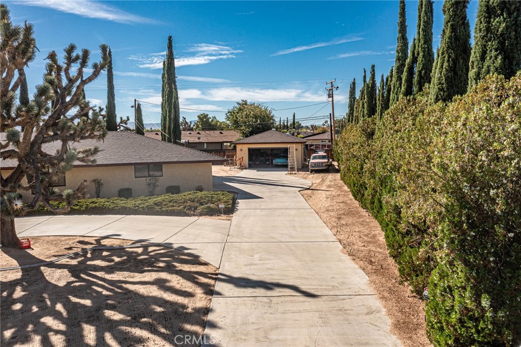 Welcome to 20407 Eyota Rd, Apple Valley — a spacious ranch-style retreat tucked away in a peaceful cul-de-sac! This inviting 2,006 sq. ft. single-story home offers comfort, space, and exceptional functionality—perfect for those seeking room to live, work, and create. A large circular driveway frames the beautifully maintained front yard, highlighted by a signature Joshua Tree. Car enthusiasts and hobbyists will appreciate the oversized 3-car attached garage (30+ ft. deep) and a detached 2-car workshop equipped with a commercial-grade air compressor with built-in lines and an evaporative cooler—ideal for year-round projects.There is 220 available, can help with setting up for your E/V charger or any equipment needing this wattage. Inside, the home features rustic laminate flooring throughout, a new roof, fresh exterior paint, updated ductwork, and a new A/C and heating system for peace of mind. While the kitchen and bathrooms retain their original charm, the kitchen has received a light makeover—opening up the space by removing the overhead cabinet and adding a breakfast bar that connects seamlessly to the family room. The open-concept living and dining areas are warm and inviting, centered around a large brick fireplace and a mounted 75” TV, perfect for entertaining or cozy nights in. All three bedrooms are situated in the east wing, each with ceiling fans and plenty of natural light. The primary suite opens to a private patio, ideal for a future jacuzzi, garden nook, or peaceful meditation area. Enjoy the tranquility of this well-established neighborhood while still being close to shopping, dining, and schools. With a solid structure, upgraded systems, and endless potential for personalization, this Apple Valley gem is ready for its next chapter. Contact a realtor and make this home your home sweet home.