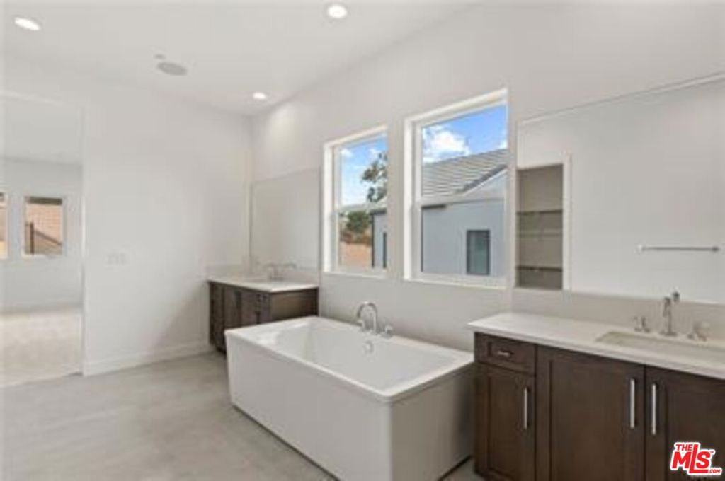 Brand new construction in the prestigious Verona Estates community of Chatsworth, nestled in the foothills of Porter Ranch. The spacious living area features a sleek linear fireplace and is flooded with natural light during the day, while recessed lighting provides an ambient glow in the evenings. The bright and spacious living room features sliding glass doors that open to the backyard, creating seamless indoor-outdoor. The chef’s kitchen is a true showstopper, boasting an oversized quartz island, Sub-Zero refrigerator, Wolf appliances, walk-in pantry and custom soft-close cabinetry, perfect for hosting and gatherings in style. The main-level primary suite is a private retreat, complete with dual sinks, a luxurious soaking tub, and a generously sized walk-in closet. The upstairs primary suite offers breathtaking views, along with a spa-inspired bathroom featuring a spacious walk-in shower with dual shower heads, double sinks, a separate soaking tub, and a generously built-out walk-in closet. All bedrooms are en-suite, offering ultimate privacy and comfort for every member of the household. The home features two spacious lofts, ideal for a private office, media room, or additional living space, Additional highlights include a fully paid-off solar system, Energy Star-rated efficiency, dual-pane windows. This stunning home offers a beautifully landscaped backyard featuring pavers, artificial turf, and new gates, providing a private and functional space ideal for entertaining. Ideally situated near the new Porter Ranch Vineyards shopping center, upscale dining, and a newly developed community park. This exceptional home combines modern elegance, premium finishes, and an unbeatable location.