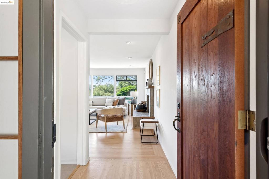 This quality, mid-century home with Bay views and an elegantly designed garden is located in the highly desirable Crestmont neighborhood. It is conveniently located to Highway 13 and Highway 580. The local community offers shopping at the top-rated Skyline Community Market and nearby Montclair. Abundant outdoor activities are available at the Oakland Hills Swim & Tennis Club, Joaquin Miller Dog Park, Redwood Regional Park, Robert’s Park, and Redwood Equestrian Arena. The main living and dining area features a stone fireplace and an expansive window wall which opens onto a deck with Bay views and overlooks a serene garden. Hardwood floors span most of the upper level. The kitchen has been recently updated with all new appliances and offers a spacious eating area plus plenty of storage. The spacious primary bedroom has two closets, bay views and an updated bathroom with a tub. There are also two other bedrooms and a second updated bathroom on this level. The lower level has a spacious family room with built-in shelving, a wet bar, an office, large storage areas, and access to the garden. There is a half bathroom, two workshop areas, and laundry facilities adjacent to the 2-car garage. The back garden has a level lawn, meandering pathways and an Asian inspired landscape area.