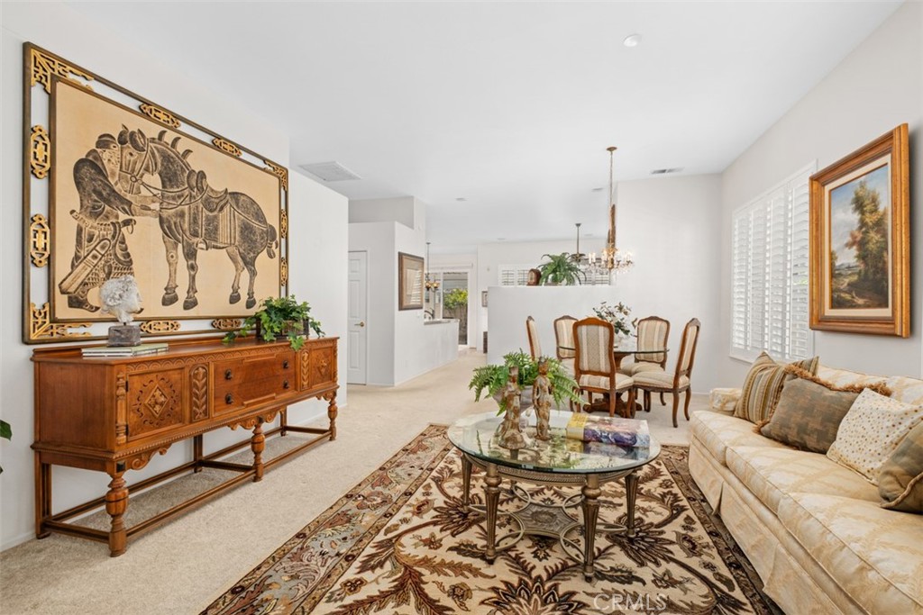 This home is an exceptional value in the highly desirable Palmia senior community. This well-maintained single-story residence features 2 bedrooms and 2.5 baths, with the second bedroom currently used as an office and not offering a closet. The inviting floor plan includes a formal living room, formal dining area, and a spacious family room with a fireplace, all adjacent to a large kitchen with abundant storage and a charming breakfast nook. The primary suite is privately situated at the back of the home and features a double-sink vanity, separate soaking tub and stall shower, a large customized walk-in closet, and a private water closet. At the front of the home, the en suite guest bedroom provides comfort and privacy for visitors, while the powder room is ideal for guests. The oversized laundry room offers extensive storage cabinets, a laundry sink, and direct access from the garage. Outside, the low-maintenance backyard is perfect for relaxing or entertaining family and friends. Additional upgrades include epoxied plumbing pipes for leak prevention, newer heating and air conditioning, shutters throughout, surround sound in the family room, new toilets, ceiling fans, epoxied garage floors, and ample overhead garage storage. Palmia is second to none, offering resort-style amenities including an 18-hole putting green, tennis, paddle tennis, pickleball, pool and spa, bocce, fitness center, billiards, card room, library, beautiful clubhouse, social clubs, parties, and much more. Residents also enjoy access to Lake Mission Viejo, featuring sandy beaches, boating, and popular summer concerts.