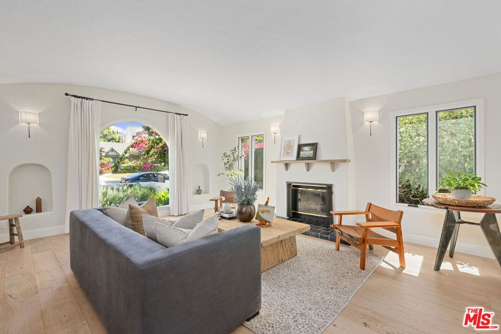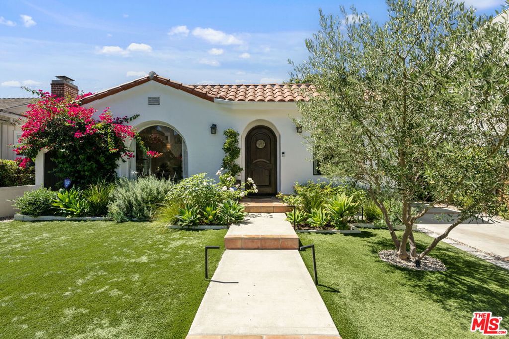 Sophisticated 3 bed/3 bath + family room (2,022 sqft) + 1 bed / 1 bath ADU (525 sqft) Modern Spanish designer-finished to perfection located on a flat lot on the West-side of Linnington. Professionally landscaped and enclosed and gated front yard with walkway to front paver-tiled front door entry with skylight. This home is filled with natural light throughout and beautifully remodeled finishes with the ideal open floor plan. Living room barrel ceiling, tiled gas fireplace, art niches, elegant wall sconce lighting and beautiful arched picture window, and formal dining room with arched entrance, recessed lighting, all opening to spacious front-facing family room opening to stunning contemporary kitchen with quartz countertops, skylight, stainless steel appliances including gas range, newer cabinetry, skylight and breakfast bar. Laundry room with side yard access off kitchen. Sun-filled primary suite with a custom walk-in closet, primary spa-like remodeled full bath with spa tub and separate shower and dual basins. Tranquil primary bedroom with french doors opening to spectacular entertainer’s backyard deck, landscaped yard and 2 patio areas with custom built-in fireplace and barbecue, and double gated driveway. Newly finished ADU is an extension of this beautiful home with Fleetwood pocket doors, a serving window opening to outdoor, family room/convertible 4th bedroom with custom built-ins, workspace, wine fridge and bar, full kitchen with electric range and built-in microwave and window opening to backyard with counter for serving and outdoor entertaining. Stunning ADU 3/4 bath with marble and granite finishes. 2 additional bedrooms inside the home, one with an ensuite bathroom. Additional features include dual pane windows, white oak hardwood flooring, 3 completely updated bathrooms, California Closets, central ac/heat, all new interior doors and hardware. Ideal Century City Adjacent location, close to Westfield Century City Mall, UCLA and Beverly Hills. Westwood Charter School. This property shows incredible pride-of-ownership with stunning, thoughtful high-end quality finishes that will appeal to you from the moment you walk in the door.