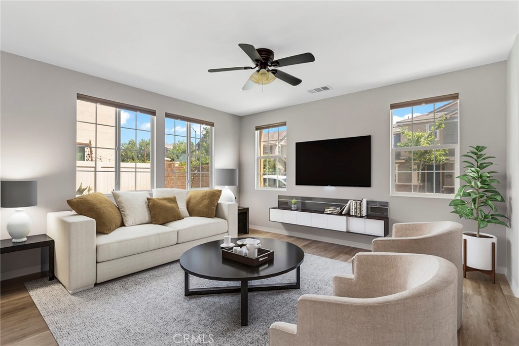 NEW PRICE! Beautifully updated home located in a desirable Providence at River Village gated community in Santa Clarita. This spacious property features fresh paint, new carpet, and natural flooring throughout. The open-concept layout includes soaring ceilings and a large kitchen with stainless steel appliances, rich mocha cabinetry, and an oversized island—perfect for everyday living and entertaining. The primary suite offers a relaxing retreat with a soaking tub, separate shower, dual vanities, and a walk-in closet complete with custom organizers. Additional highlights include a downstairs bedroom, mirror closet doors in the secondary bedrooms, and a low-maintenance backyard landscaped with pavers—ideal for outdoor enjoyment. Practical upgrades include a tankless water heater and storage racks in the garage. This home is conveniently located near shopping, dining, parks, and scenic trails, offering the perfect blend of comfort and lifestyle. Don’t miss this move-in ready home in one of Santa Clarita’s most sought-after communities!