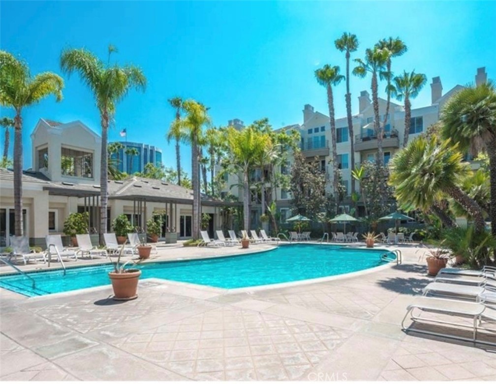 Resort-Style Living at The Metropolitan! Experience luxurious living in this beautifully maintained and partially furnished residence located within the prestigious guard-gated community of The Metropolitan. This popular floor plan features 2 bedrooms, 2 baths, plus a den/office that can easily serve as a third bedroom. The home offers fresh paint, hardwood flooring throughout, 9-foot ceilings, and recessed lighting for a bright, modern feel. The kitchen is equipped with granite countertops and backsplash, custom high-gloss white cabinetry, a double-wide sink with chrome fixtures, and all appliances including a washer and dryer. The den/office includes custom built-ins with a dual workstation—perfect for remote work or study. The primary suite features a dual-sink granite vanity, tumbled marble backsplash, walk-in shower, and soaking tub, while the guest bath offers granite counters and a full-size walk-in shower with seamless glass enclosure. Enjoy resort-style amenities including a sparkling pool, spa, clubhouse, and fitness center, all surrounded by lush tropical landscaping. HOA dues cover gas, water, sewer, and trash, with ample guest parking available. Truly a must-see home in a prime location!