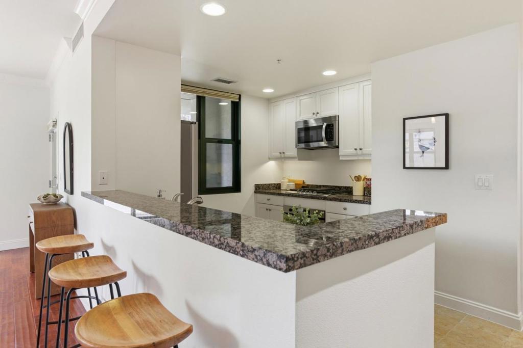 Welcome to your stunning corner ground-floor condo in the heart of San Mateo! This 2-bedroom, 1-bath residence offers a rare private entrance and an ideal layout with bedrooms positioned at opposite ends of the unit perfect for privacy, guests, or a home office. The gourmet kitchen is a chef’s dream, featuring granite countertops, brand-new stainless steel appliances, a gas cooktop, and elegant limestone flooring. The bathroom is finished in exquisite crema marfil marble, lending a spa-like sophistication to everyday living. Custom Hunter Douglas shades throughout add a refined, tailored touch to every room. Built to commercial-grade construction standards, this luxury building delivers the peace and quiet you deserve. Stay comfortable year-round with central A/C and heating, enjoy in-unit laundry, and take advantage of two deeded parking spaces in a secure underground garage. Residents also enjoy an on-site gym everything you need at your doorstep. Step outside and you’re just a block and a half from Central Park and the vibrant shops, restaurants, and energy of Downtown San Mateo. This is refined urban living at its finest: don’t miss your opportunity to call it home!