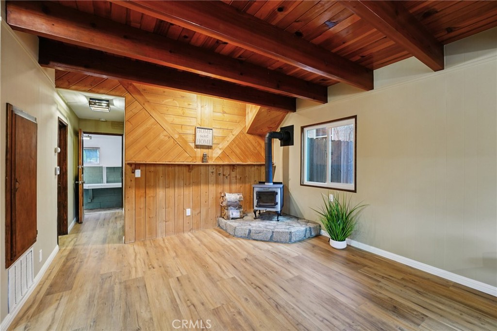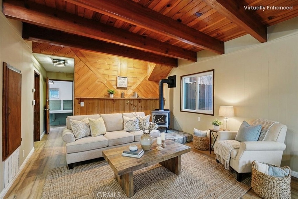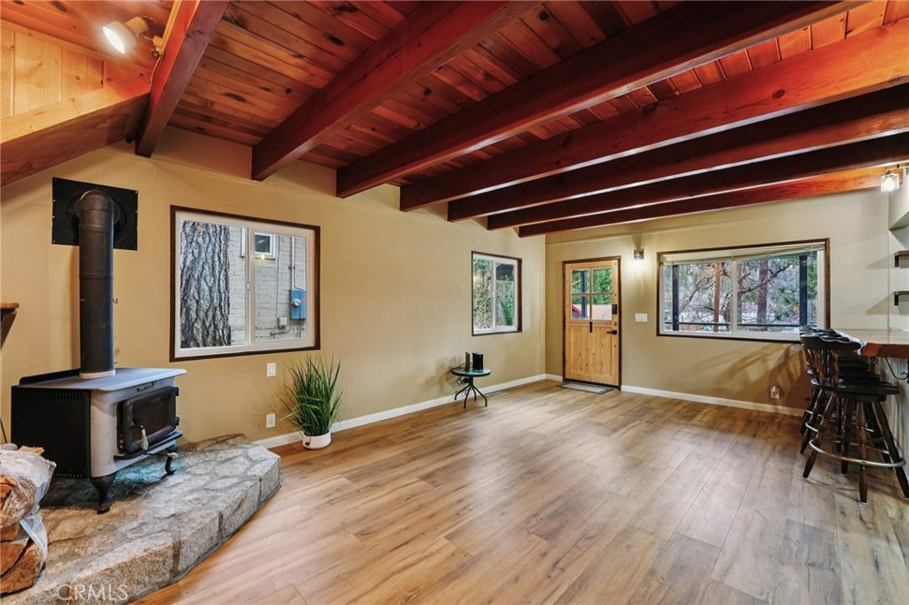 Turn-Key Mountain Retreat in Crestline — Move-In Ready Welcome to your freshly updated mountain escape in Crestline, where cooler temps, fresh air, and four true seasons feel like another state, without the long drive. This turn-key, move-in ready home is the perfect way to escape the city while staying close enough to commute to San Bernardino, Redlands, or Loma Linda. Step inside to a clean, modern refresh throughout: new luxury vinyl plank flooring, brand-new kitchen and bath cabinets, all new fixtures, doors, closets, and lighting, plus fresh, designer interior and exterior paint. Simply bring your furniture and bags, everything else is done. The living room delivers true mountain charm with beautiful wood paneling and rich wood beams, anchored by a wood-burning fireplace for cozy evenings in. The kitchen features a breakfast counter crafted from a real wood log, a one-of-a-kind touch that perfectly fits the cabin vibe. Outside, enjoy peaceful autumn nights or gentle winter snowfall from the front porch. Downstairs, the garage doubles as a flexible workshop space, complete with plumbing and utility fixtures for added convenience, ideal for projects, hobbies, or extra storage. The home is both cozy and functional, designed for easy living year-round. Summer here means escaping the heat and enjoying cooler mountain evenings, while fall colors, winter charm, and spring blooms deliver all four seasons. It’s the lifestyle reset you didn’t know you needed. Location-wise, you’re right in the sweet spot, an easy launch point for day trips to Lake Gregory (hiking, fishing, summer concerts), Lake Arrowhead, or Big Bear Lake. Whether you’re after adventure or quiet cabin vibes, it’s all within reach. At a lower, more affordable entry point into mountain living, this is the perfect full-time home, weekend getaway, or sanity-saving retreat. Come tour it today — before this escape escapes you. ***PROPERTY IS NOT FOR RENT. Any rental listing is a scam!***