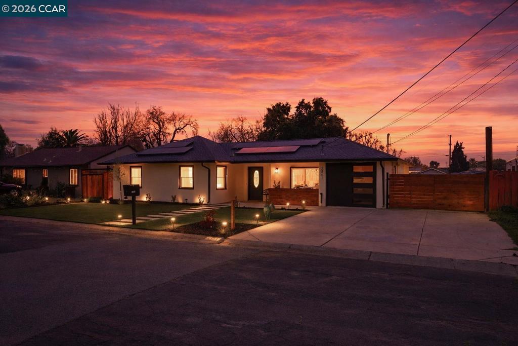 Welcome to 2361 Bedford Rd, a beautifully renovated 3-bedroom, 1-bath home blending Modern Rustic design with subtle Spanish-inspired charm. Situated on a spacious 9,217 sqft lot with direct vehicle access to the backyard, this property offers flexibility for entertaining, additional parking, or future expansion potential! The updated interior features a brand-new kitchen with quartz countertops, a unique designer backsplash, recessed lighting, elegant arch entries, and modern finishes throughout. New pattern tile and durable laminate flooring pair seamlessly with fresh interior and exterior paint. The functional layout includes a dedicated open pantry and laundry area at the rear, leading to the backyard through a gorgeous wood-stained Dutch door. Additional upgrades include a new central heating and air system, owned solar, a new modern garage door, an extended front driveway for added parking, and precise landscaping that enhances curb appeal. A turnkey Concord opportunity offering style, space, and long-term potential.