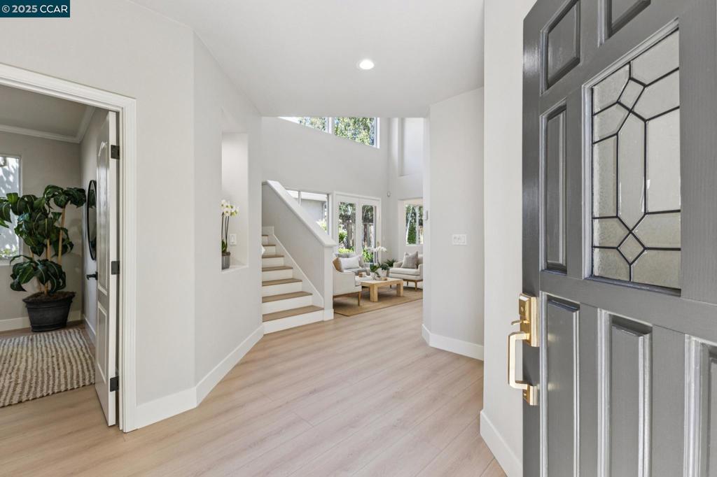 Prime court lot in arguably Danville’s most coveted neighborhood- Hidden Valley! Absolutely beautifully updated in July 2025, this 4BD+office (no closet), 3BA gem is ready to move right into! Fabulous layout with a bedroom, office, & full bath on the main floor and primary suite with two secondary bedrooms on the upper level. Kitchen opens to the family room—and the living, dining, and family rooms open to the backyard— optimal for indoor/outdoor entertains flow. Throughout you’ll enjoy fresh paint, quartz counters, wood laminate floors (exception: tile floor at upstairs bathrooms), re-glazed tile surround at baths, updated lighting, faucets, fixtures, baseboards, etc! Primary suite boasts a vaulted ceiling and fabulously updated en-suite bath with new vanity & related fixtures & a new frameless shower door (July 2025), a walk-in closest “plus” a wardrobe closet, stall shower & bathtub. Backyard offers expansive patio areas amidst professionally landscaped grounds. Enjoy a welcoming community with neighbors who foster camaraderie and support + a prime location near all 3 levels of school, charming downtown Danville, 680, & Mt Diablo. This is the 1st home in Hidden Valley’s Classic Collection to come available since 1Q23! Don’t snooze and let this one pass you by.