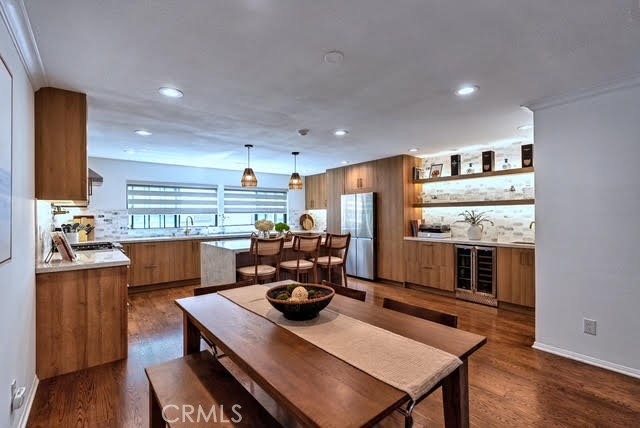 Coastal Living Just Blocks from the Redondo Beach Pier!!! This bright and airy townhome offers 2 bedrooms, 2½ bathrooms, a loft, and a versatile basement in a prime Redondo Beach location, just minutes from the sand and pier. The gourmet chef’s kitchen is a standout feature, boasting elegant Taj Mahal Quartzite countertops that wrap around the expansive waterfall island, along with a wet bar, wine fridge, Samsung top-of-the-line refrigerator, and stainless steel appliances. Both the primary and guest bedrooms feature ensuite bathrooms, and the guest bathroom and powder room have been tastefully updated. The primary suite includes a loft ideal for a home office and a private balcony—perfect for soaking up the sun or enjoying a glass of wine while watching the sunset. Accessible from the attached 2-car garage, the basement offers flexible space for a gym, media room, or bonus area, complete with a convenient washer and dryer. The living room features a cozy gas/wood-burning fireplace and flows to a spacious deck, ideal for barbecues, outdoor dining, or simply savoring the refreshing ocean breeze. Recent updates include a newer furnace and water heater, both replaced just three years ago. Enjoy morning walks to the beach and evenings with breathtaking sunsets. With low HOA dues of only $300 per month, a friendly neighborhood, guest parking, and plenty of street parking, this home perfectly blends coastal lifestyle with everyday comfort.