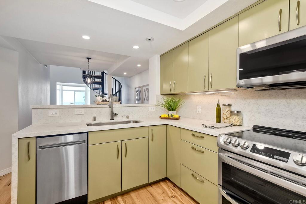 Premier Bay Views in the Heart of Bankers Hill. This top-floor residence at Laurel Bay offers sweeping westerly views of San Diego Bay and the city skyline from one of the community’s most desirable locations. Thoughtfully renovated, the home features an upgraded kitchen, refreshed bathrooms, new flooring, and fresh paint, creating a move-in-ready space with modern style. The open main level flows seamlessly from the updated kitchen to a bright living area with spectacular sunset views. Upstairs, the versatile loft -complete with its own en suite bathroom and closet – is ideal as a guest suite, home office, or additional bedroom. Additional highlights include two dedicated parking spaces, in-unit laundry, and access to Laurel Bay’s resort-style amenities with pool and gym. Located just steps from Balboa Park, Little Italy, the Gaslamp Quarter, and San Diego’s best dining, shopping, and entertainment. Enjoy the perfect blend of urban convenience, modern upgrades, and breathtaking views in this exceptional home.