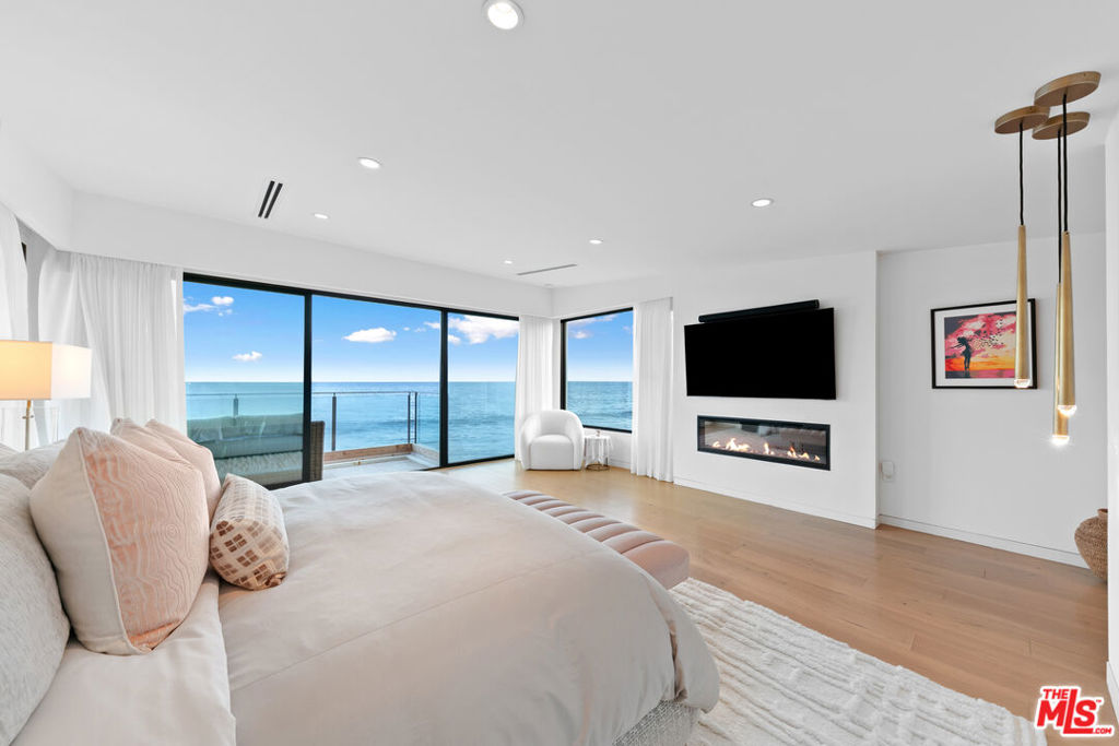 Experience Malibu living at its finest on iconic Malibu Road. This prestigious property, a former celebrity-owned beachfront retreat, is a breathtaking coastal sanctuary offering sweeping ocean views that stretch from Santa Monica and Palos Verdes to Catalina and Point Dume. A dramatic entryway makes a jaw-dropping impression, framed by landscaped front and back courtyards. Towering two-story ceilings and complete privacy elevate the living experience, while expansive outdoor spaces invite both serenity and entertaining. Inside, rich oak hardwood floors flow throughout. The gourmet kitchen stuns with creamy white cabinetry, luxurious finishes, and a layout designed for both beauty and functionality. The oceanfront primary suite is a true retreat with a cozy fireplace, dual walk-in closets, and panoramic views. The spa-like primary bath features a soaking tub, oversized steam shower, and direct ocean views. Upstairs, two guest bedrooms share a dual bathroom, offering both comfort and privacy. Outdoor living is unmatched, with a rare and expansive entertaining area complete with a built-in BBQ and private spa. The main house offers four bedrooms plus an office/den, while a completely separate one-bedroom guest house with its own ocean views sits across the courtyard. This iconic, exquisitely designed property is truly one of Malibu’s finest, and can be sold fully furnished.